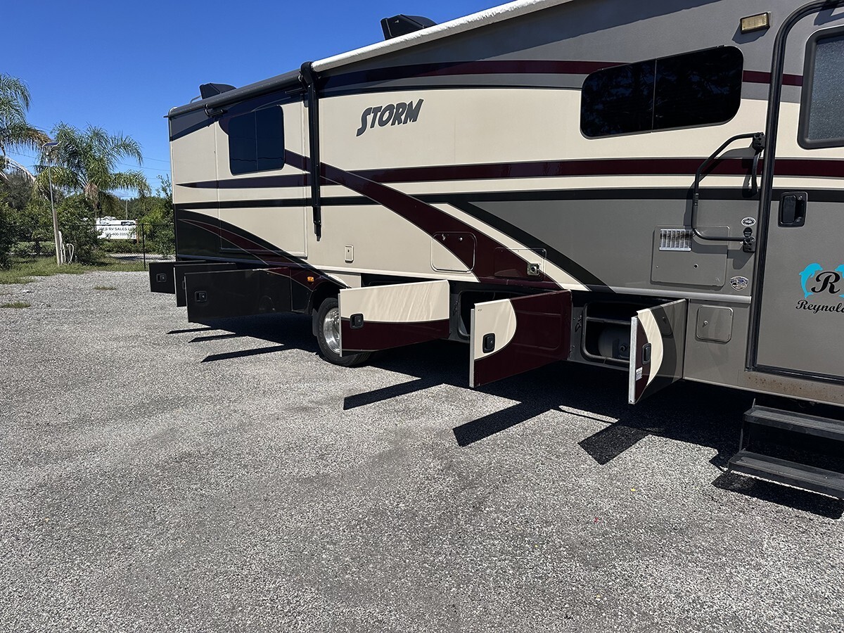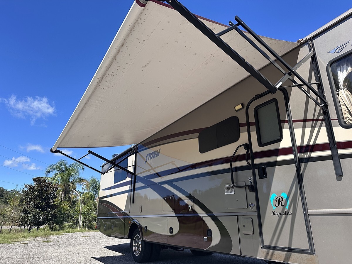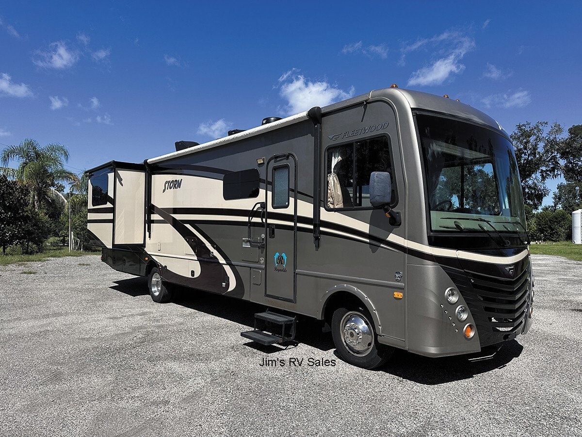 2016 Fleetwood Storm 36' length. Brand new tires. Beautiful 2 slides, one and a half bath motorhome powered by Ford 362HP V10 engine with 6.8L Triton engine on a Ford chassis with only 38,612 miles.Dual A/C, Fireplace, residential refrigerator, back up camera, outside TV, automatic hydraulic leveling jacks. Sleeps 6, Hide-A-Loft drop down queen bed creates extra sleeping space without sacrificing room.Clean and ready for the road.