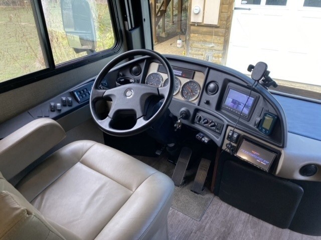 This Pace Arrow is powered by a 6.7L I6 diesel engine and a 6-speed automatic transmission with 28,000 miles. The overall length is 36.75 feet and comes equipped with 2 power retractable slide-outs, a 17-foot power retractable awning, 2 A/C units, a generator, bunk beds, a washer/dryer, an outdoor entertainment system, and room to sleep up to 10. This unit has been well-maintained.