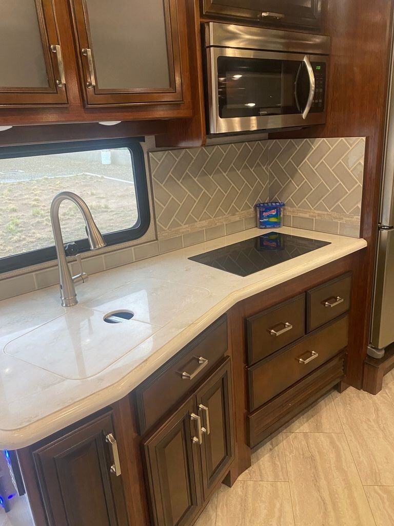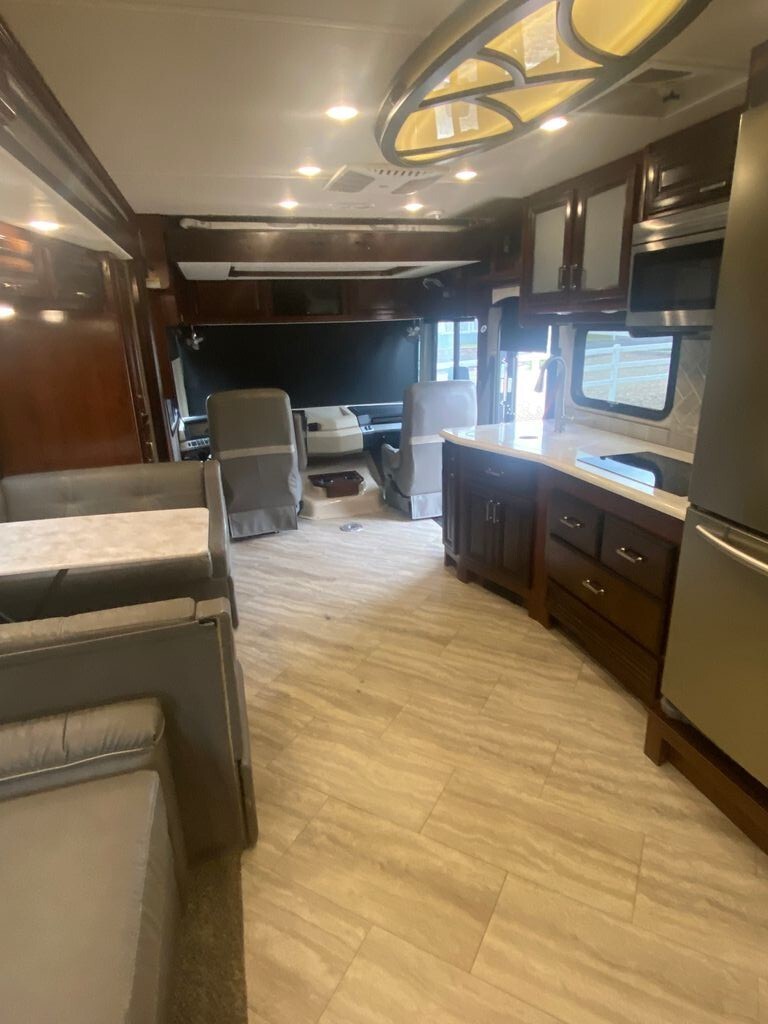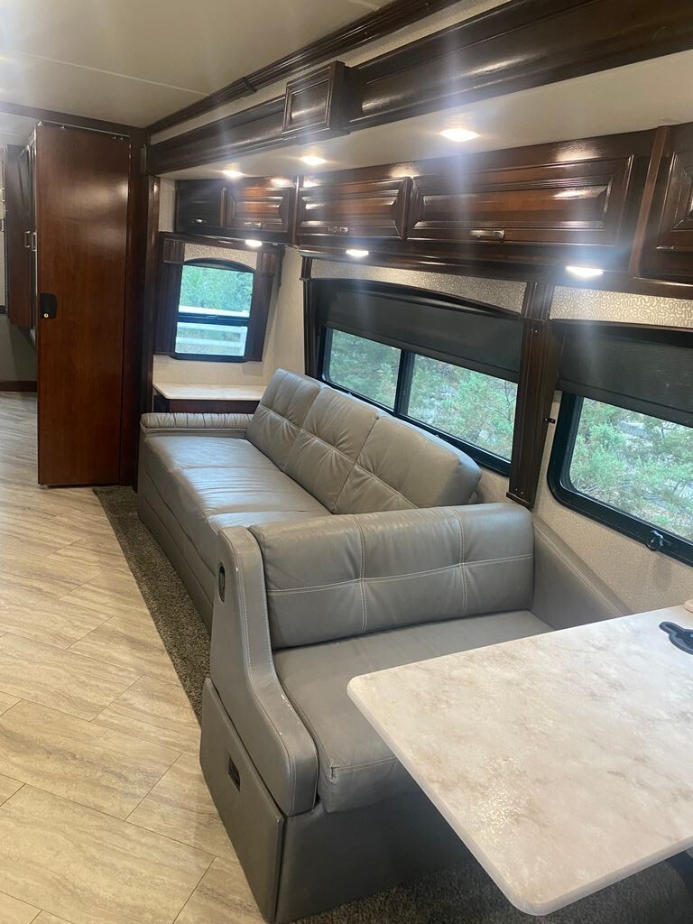Step inside to a bright, open living area thats perfect for entertaining or relaxing after a day of adventure. The expansive interior features plush seating, a versatile dining space, and large windows that flood the space with natural light. The fully equipped kitchen offers quality appliances, ample counter space, and generous storage to make meal prep simple and enjoyable no matter where you roam.
