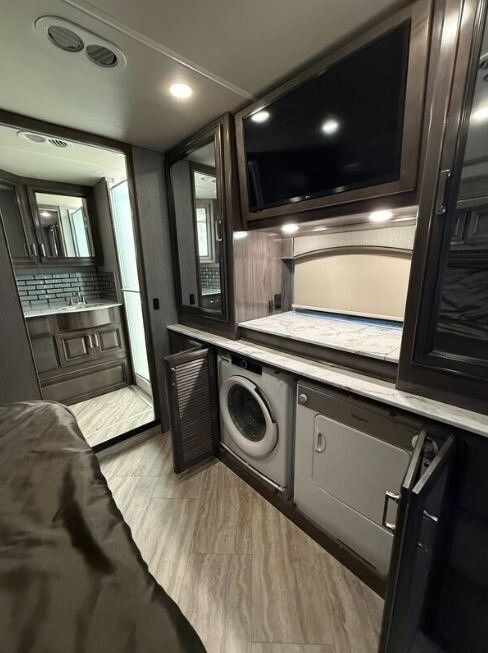 “This 2020 Fleetwood Pace Arrow 36U Class A diesel pusher is a beautifully maintained, luxury motorhome with only 58,800 miles and is truly turnkey and road-ready. Built on a Freightliner chassis and powered by a Cummins ISB 6.7L 340 HP engine, it delivers smooth, confident performance and averaged 9.7 MPG while towing a Honda CRV. The spacious interior features multiple slide-outs, a residential refrigerator, two-burner induction cooktop, convection microwave, tankless Girard hot water system, washer/dryer, central vacuum, and a double-size bunk over the driver’s area. Comfort is enhanced with two A/C units (one with heat pump), two propane furnaces, plush seating, a 42-inch smart TV with sound bar, and an electronic fireplace. The cockpit includes Freightliner’s technology dash with three-camera display and smartphone integration for ease and safety. Outside, the sleek design makes a strong presence, and included with the coach are a Roadmaster Falcon tow bar and Air Force One braking system. Extremely clean, well cared for, and fully loaded, this Pace Arrow 36U offers an exceptional blend of luxury, performance, and reliability for extended travel or full-time RV living.”