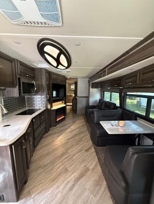 2020 Fleetwood Pace Arrow 36U Class A Diesel For Sale in Chattanooga, TN 37412 This Fleetwood is powered by a 6.7L I6 diesel engine and a 6-speed automatic transmission with 58,800 miles. The overall length is 37.58 feet, and it comes equipped with 2 power-retractable slide-outs, a 17-foot power awning, 2 A/C units, an Onan generator, a solar panel, 1½ baths, a fireplace, a washer & dryer, an outdoor entertainment system, and plenty of room to sleep 6. This unit has been well-maintained. Kitchen/Living Area Features 2-Burner Induction Cooktop Overhead Fan Microwave/Convection Oven Residential Fridge/Freez