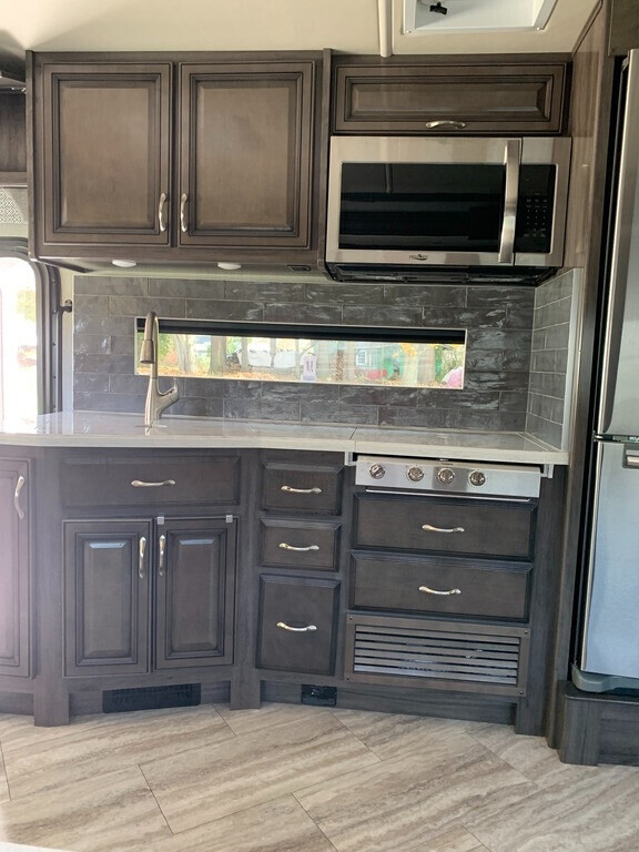 2021 Fleetwood Bounder 35K Class A RV For Sale in Saegertown, PA 16433 This Fleetwood Bounder is powered by a 7.3L V8 engine and a 6-speed automatic transmission with 7,992 miles. The overall length is 36.25 feet and it comes equipped with 2 power retractable slide-outs, 1 power retractable awning, 2 A/C units, a generator, washer/dryer, and plenty of room to sleep 6. This unit has been well-maintained. Kitchen/Living Area Features 3-Burner Stove/Oven Overhead Fan Microwave/Convection Combo Full-Size Fridge/Freezer w/ Ice Maker Sink & Faucet w/ Cover Booth