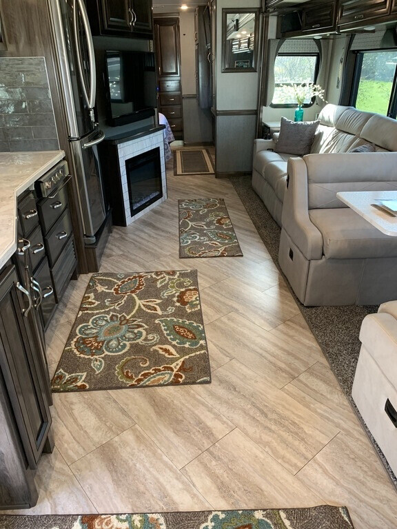 “2021 Fleetwood Bounder 35K Class A RV, a luxurious and spacious home on wheels. This model features a convenient bath and a half layout, perfect for families or entertaining guests. It comes equipped with satellite for your entertainment needs and has wheel covers and a mud flap added for extra protection on the road. Enjoy movie nights with four TVs—three inside and one outside! The full-size refrigerator with ice maker and microwave/convection combo make cooking and storing food a breeze. This RV is ready for the next adventure!”