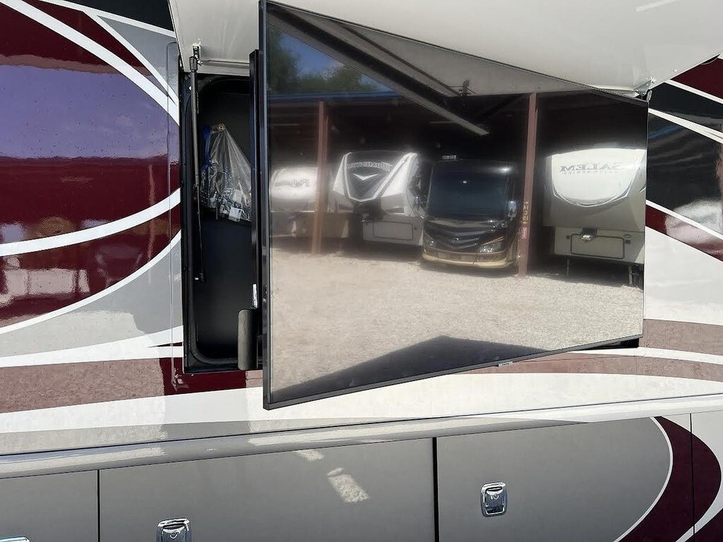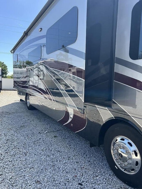 Luxury diesel motor coach loaded with top-tier amenities and still under warranty until 2027. Comfort features include heated floors with a diesel/electric boiler, three air conditioners with heat pumps, and full Bluetooth coach control from your phone to manage key systems. The smart layout offers 1.5 baths, plus residential conveniences like a washer/dryer and dishwasher. Outside, enjoy two power awnings totaling 30 feet, a large-screen TV with premium outdoor entertainment, and a rear motorcycle lift that can be converted to lift a golf cart. Massive pass-through storage features two slide-out trays accessible from either side, making packing and access effortless. This is a high-end, meticulously cared-for coach with the kind of features you’d expect on seven-figure rigs—ready for comfortable touring and extended stays.