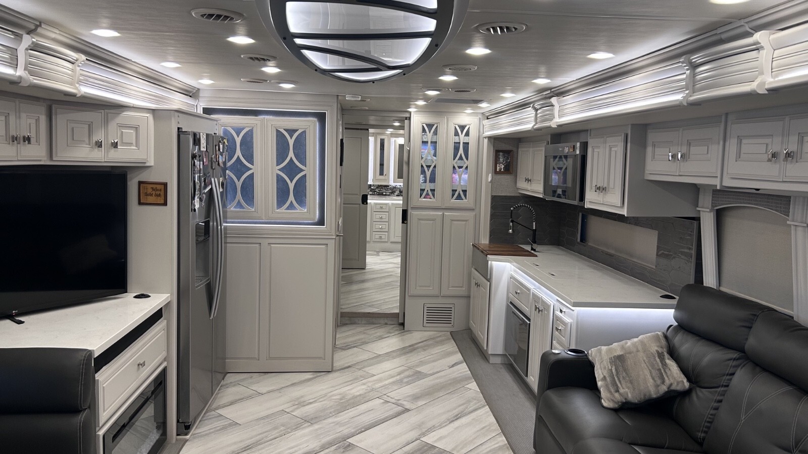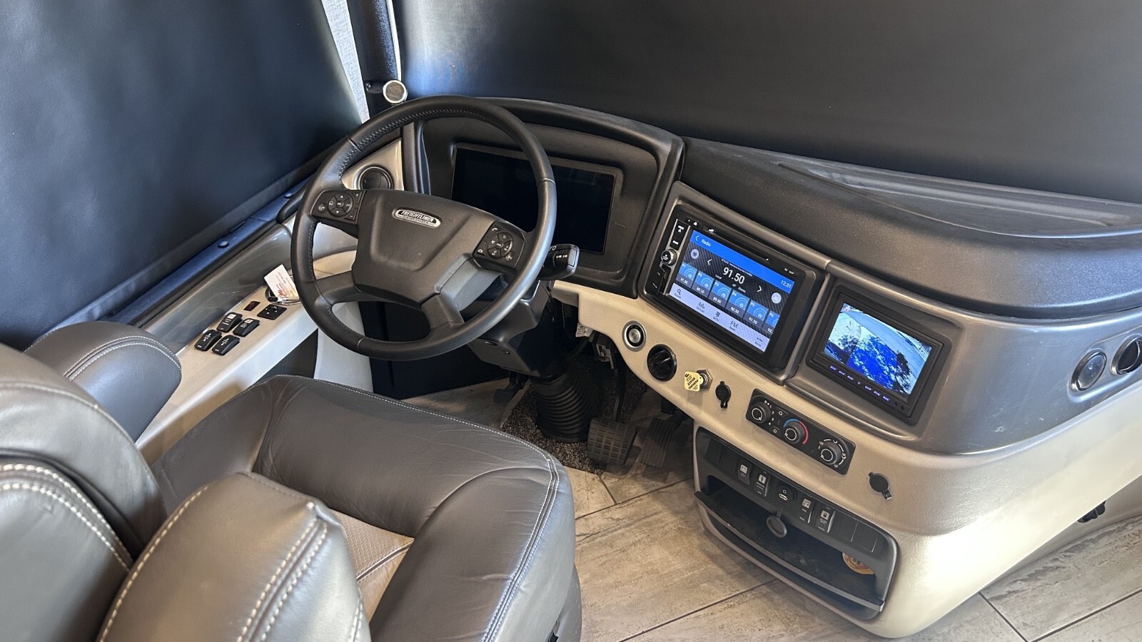 - Technology:Digital dash with touchscreen controls, mid-ship LED TVs, and a multiplex wiring system for managing the coach's functions.