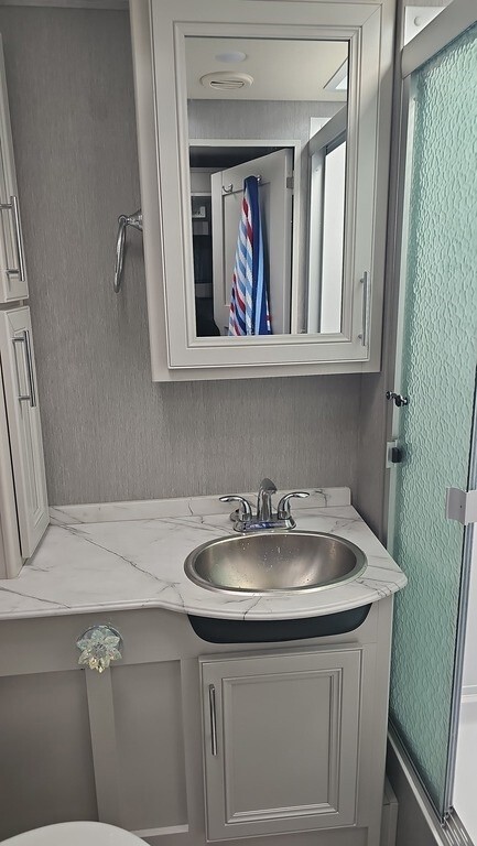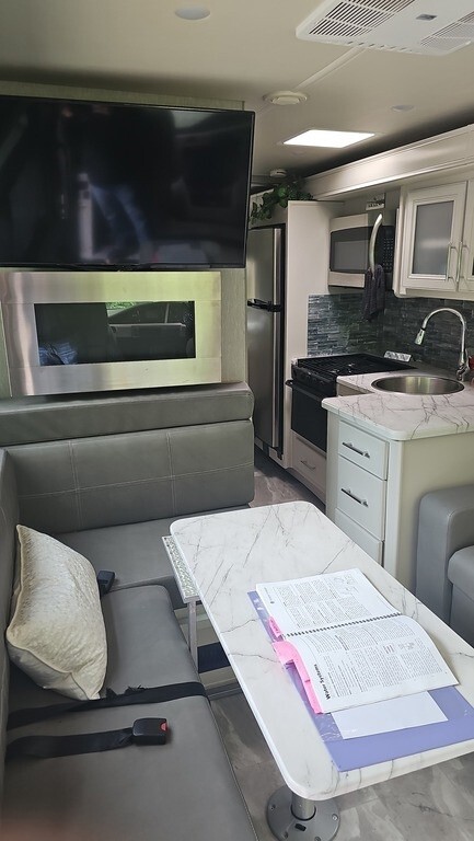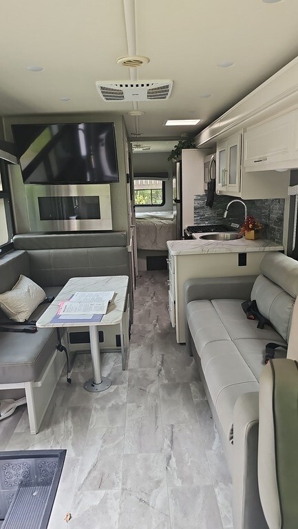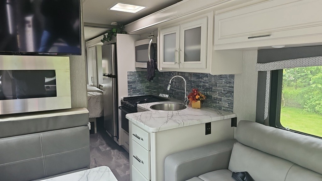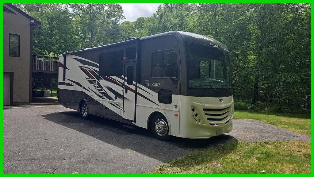 2022 Fleetwood Flair 29M Class A RV For Sale in Norton, MA 02766 This Fleetwood is powered by a 7.3L V8 engine and a 6-speed automatic transmission with 9,690 miles. The overall length is 31 feet and comes equipped with 1 power retractable slide-out, 1 power retractable awning, 2 A/C units, an outdoor entertainment system & kitchen, and room to sleep 8. This unit has been well-maintained. Kitchen/Living Area Features 3-Burner Stove/Oven Overhead Fan Microwave Full-Size Fridge/Freezer Sink & Faucet Storage Space TV &
