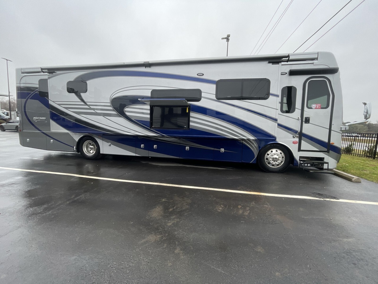 The 2025 Fleetwood Discovery LXE 40M is a luxury motorhome designed for comfortable and stylish travel. Built on a Freightliner XCM chassis and powered by a 380-horsepower Cummins I6 diesel engine, it offers a smooth and efficient drive. Measuring just over 40 feet in length, the 40M provides ample space for relaxation and entertainment. The interior features porcelain tile flooring, hardwood cabinetry, and polished solid surface countertops. The living area includes plush seating and a pop-up LED TV, while the kitchen is equipped with a residential refrigerator, convection microwave, and a two-burner induction cooktop. The master suite boasts a king-size bed, dual wardrobes, and a full rear bath with dual sinks, a tile shower with a seat, and a stackable washer and dryer. Additional amenities include a bath and a half, a fireplace, and multiple TVs, including an exterior entertainment center with a Bluetooth speaker. With its