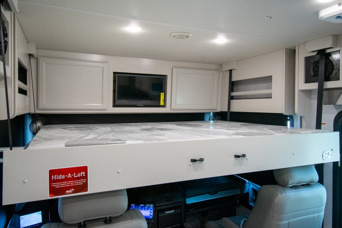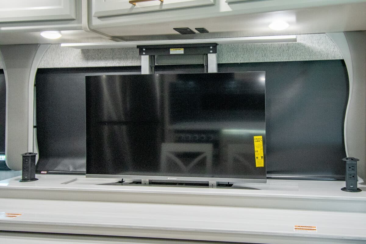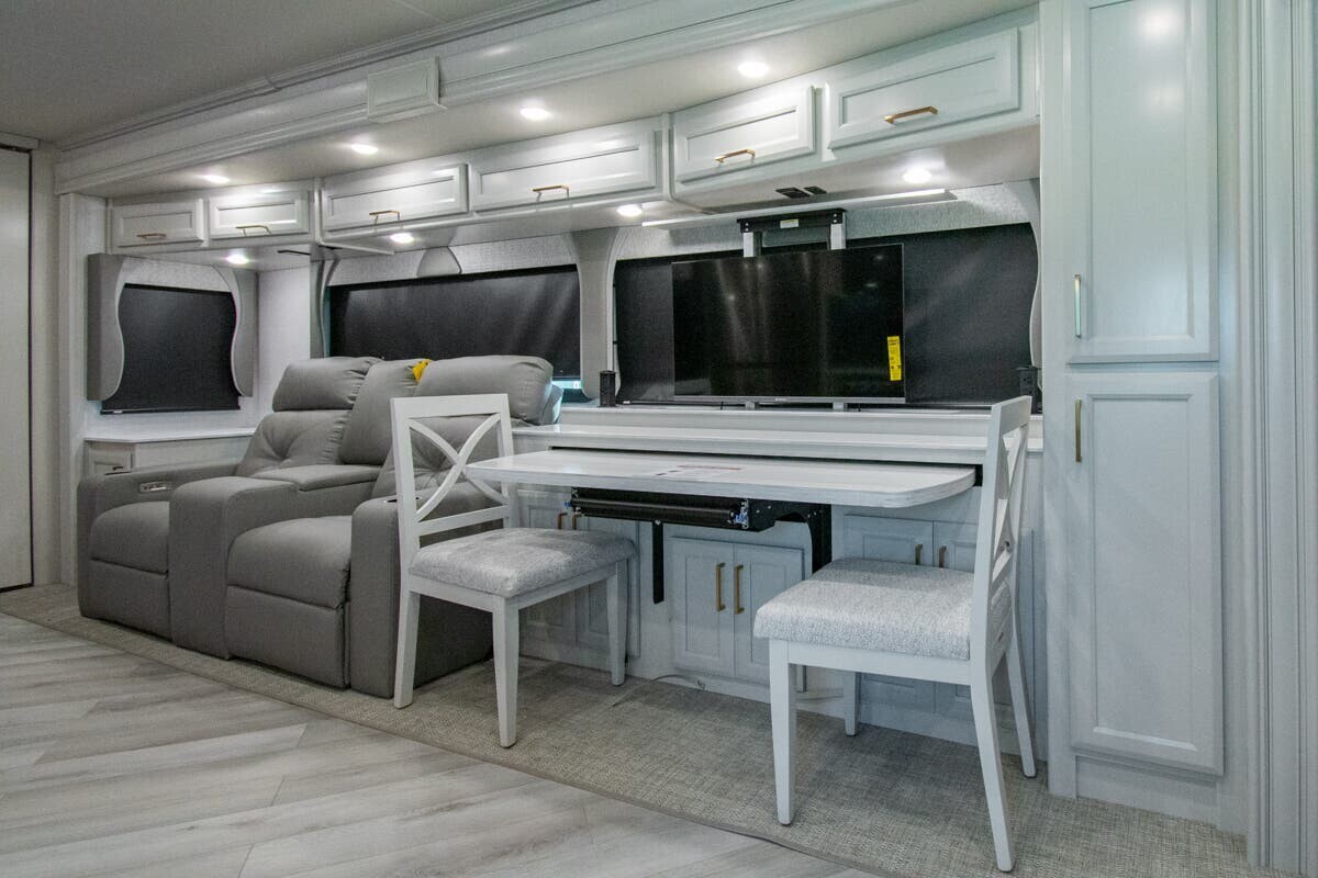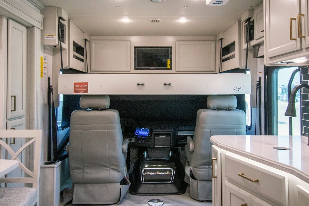 The 2025 Fleetwood Bounder 33C is a spacious and comfortable Class A motorhome designed for travelers seeking a reliable and enjoyable experience on the road. Measuring 34.25 feet in length, the 33C offers a well-thought-out floor plan that maximizes both living and storage space. a robust 7.3-liter V8 engine delivering 335 horsepower and 468 lb-ft of torque, this motorhome ensures a smooth and powerful drive across various terrains. With a towing capacity of 8,000 pounds, bringing along additional gear or a secondary vehicle is convenient.Inside, the 33C features a welcoming living area with plush seating, including two recliners and a comfortable sofa, all upholstered in durable vinyl. The open floor plan leads to a modern kitchen equipped with solid-surface countertops, a three-burner cooktop, a full-size stainless steel refrigerator, and a convection microwave, making meal preparation straightforward.