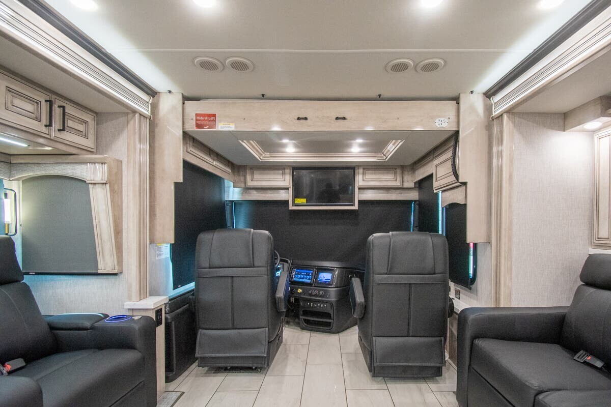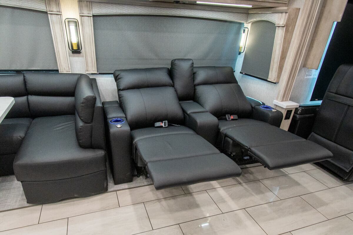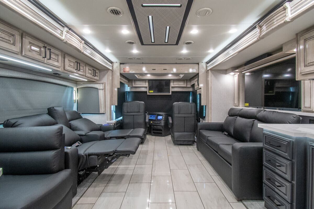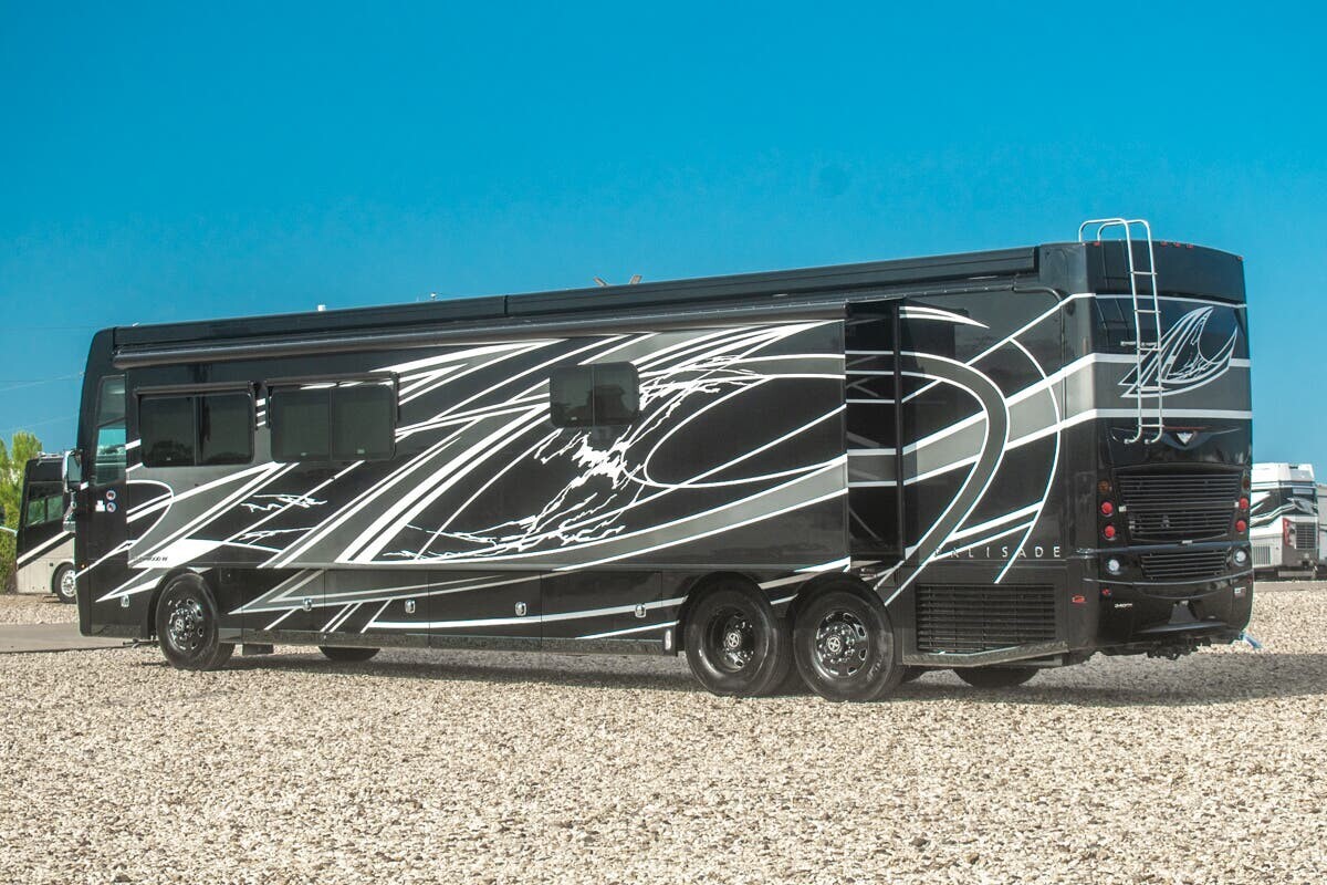The 2025 Fleetwood Palisade 45CS is a top-tier Class A diesel motorhome that offers a perfect mix of comfort and modern features. Built on a sturdy Freightliner XC-Series chassis and powered by a 450-horsepower Cummins I6 diesel engine, it ensures a smooth and reliable journey.On the outside, the Palisade 45CS showcases a sleek design with aerodynamic lines that not only enhance its appearance but also improve fuel efficiency. Its durable aluminum body and fiberglass sidewalls are finished with high-quality paint, ensuring it remains attractive and resilient against various weather conditions.Inside, the spacious layout is designed for maximum comfort and convenience. The living area features plush leather seating, including a sofa and two recliners, providing ample space for relaxation and socializing. Large windows allow natural light to fill the space, creating an open and inviting atmosphere. For entertainment, the RV is