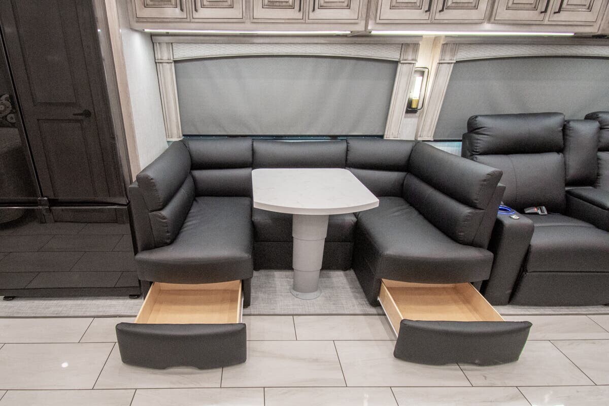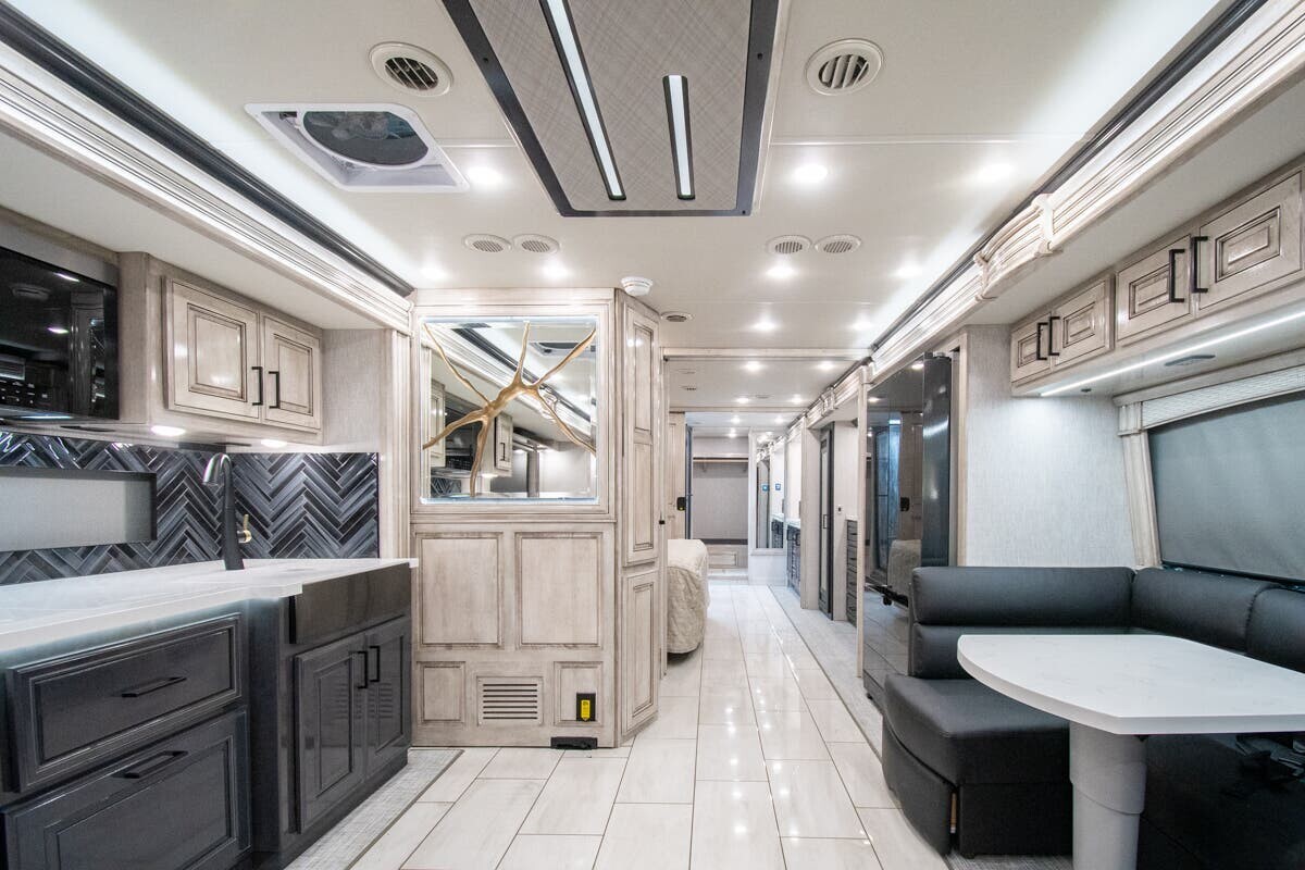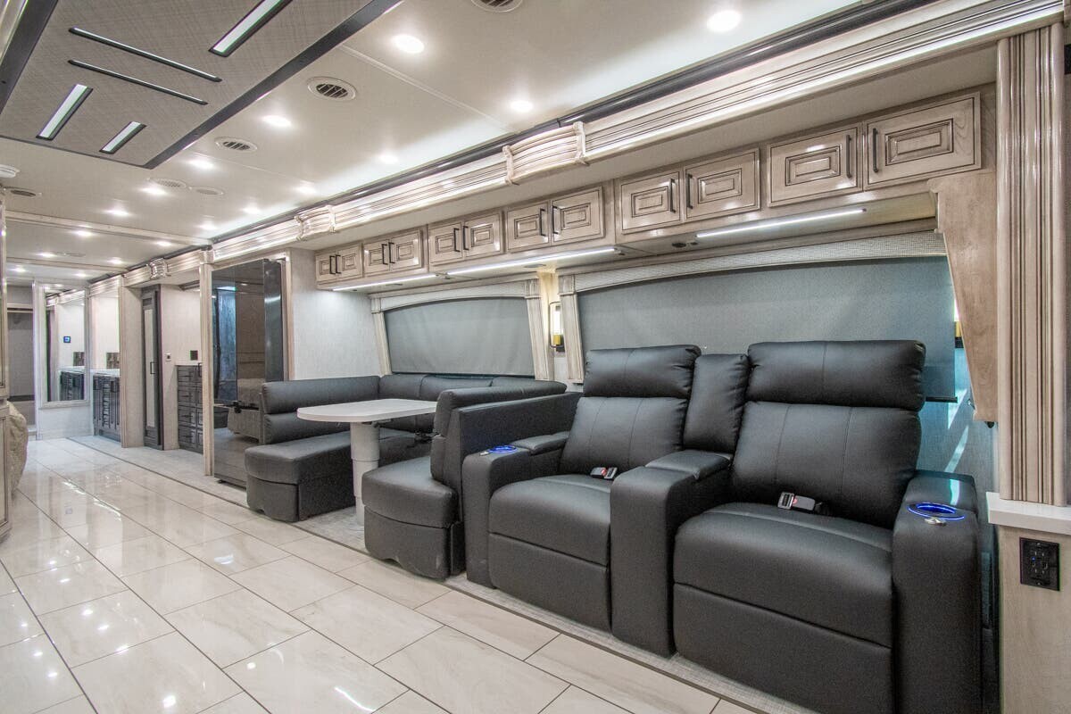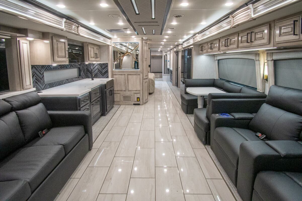 The 2025 Fleetwood Palisade 45CS is a top-tier Class A diesel motorhome that offers a perfect mix of comfort and modern features. Built on a sturdy Freightliner XC-Series chassis and powered by a 450-horsepower Cummins I6 diesel engine, it ensures a smooth and reliable journey.On the outside, the Palisade 45CS showcases a sleek design with aerodynamic lines that not only enhance its appearance but also improve fuel efficiency. Its durable aluminum body and fiberglass sidewalls are finished with high-quality paint, ensuring it remains attractive and resilient against various weather conditions.Inside, the spacious layout is designed for maximum comfort and convenience. The living area features plush leather seating, including a sofa and two recliners, providing ample space for relaxation and socializing. Large windows allow natural light to fill the space, creating an open and inviting atmosphere. For entertainment, the RV is