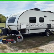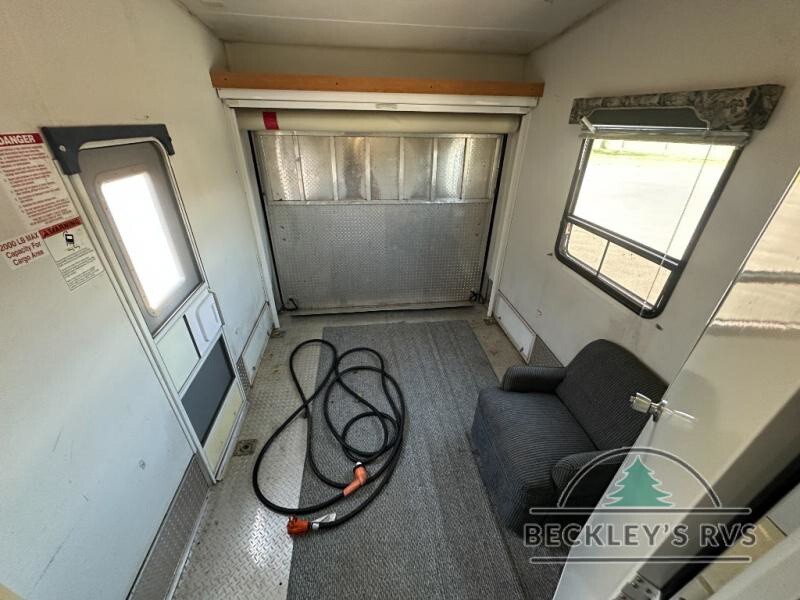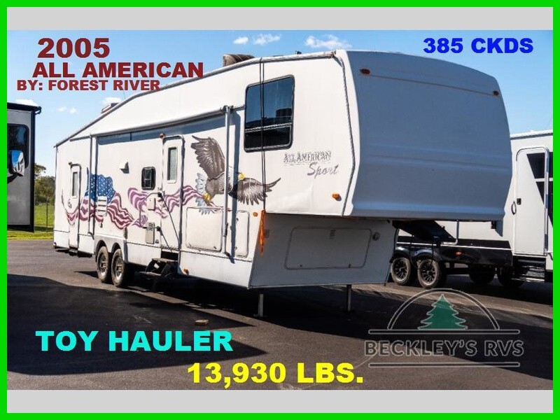 UP FOR SALE HERE IS A LARGE TOY HAULER BY FOREST RIVER. HANDYMAN SPECIAL: HYDROLIC SLIDE SYSTEM NEEDS REPAIR. THERE IS A LEAK AT THE FRONT PUMP. When this came in the slides were partly out. We got them in. The body is not bad for a 20 year old fiberglass camper. There are a few spots of cosmetic delamination. SEE VIDEO Interior is in good condition Fabric is good, floors are good. Refrigerator is not getting power to it. AC Blows COLD heat blows HOT water pump pumps. DUE TO AGE BEING SOLD AS -IS, OUT OF STATE ONLY . NO W
