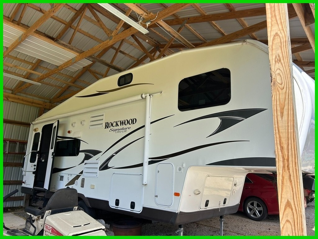 2013 Forest River Rockwood Signature Ultra Lite 8244WS Fifth Wheel This 2013 Forest River Rockwood Signature Ultra Lite 8244WS is a clean, well-cared-for fifth wheel that’s ready for your next adventure. Measuring 26 ½ feet long, it features two slide-outs for added interior space and a 17-foot power awning plus awnings over both slides for extra shade and protection. It comfortably sleeps up to six people and offers a smart, spacious layout with lots of storage throughout. Everything works exactly as it should, and it comes fully equipped with 4 brand-new tires, 50-amp transfer power, hitch, hoses, and cords all included. Enjoy the convenience of an outdoor shower and a gas grill mounted outside for easy outdoor cooking. Lightweig