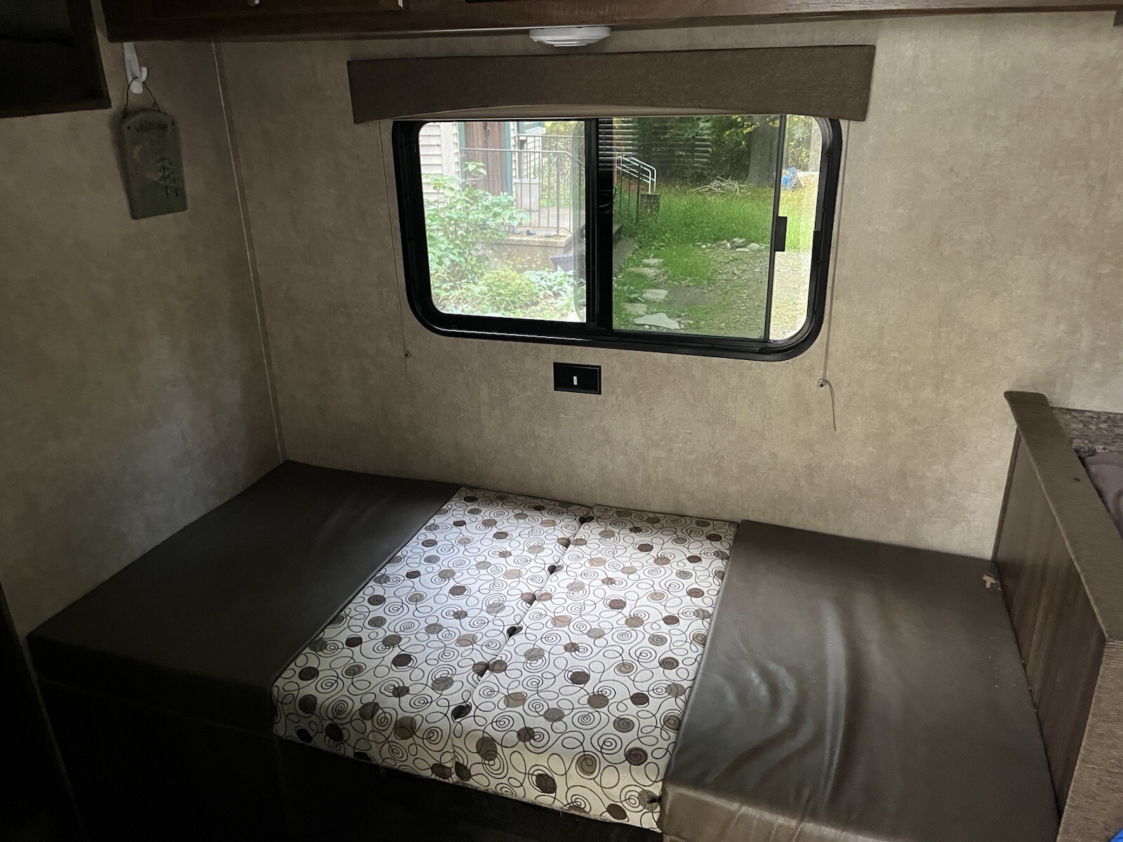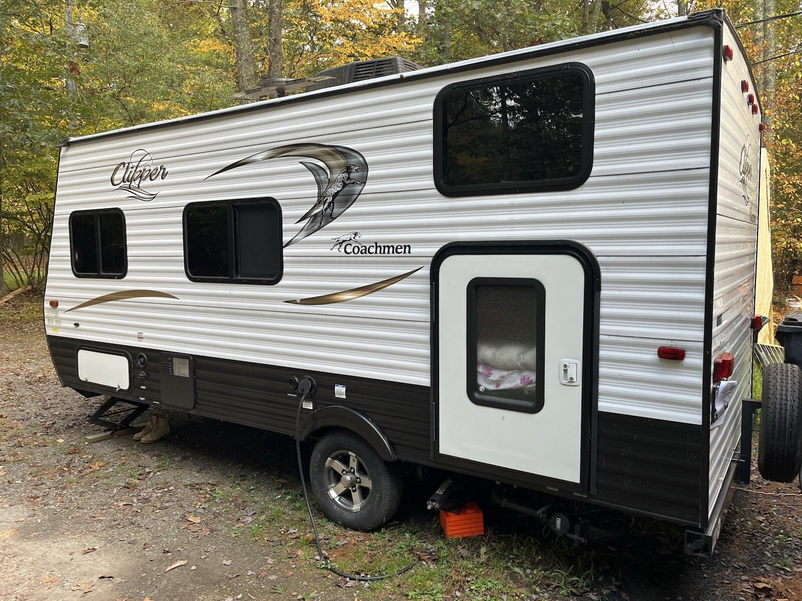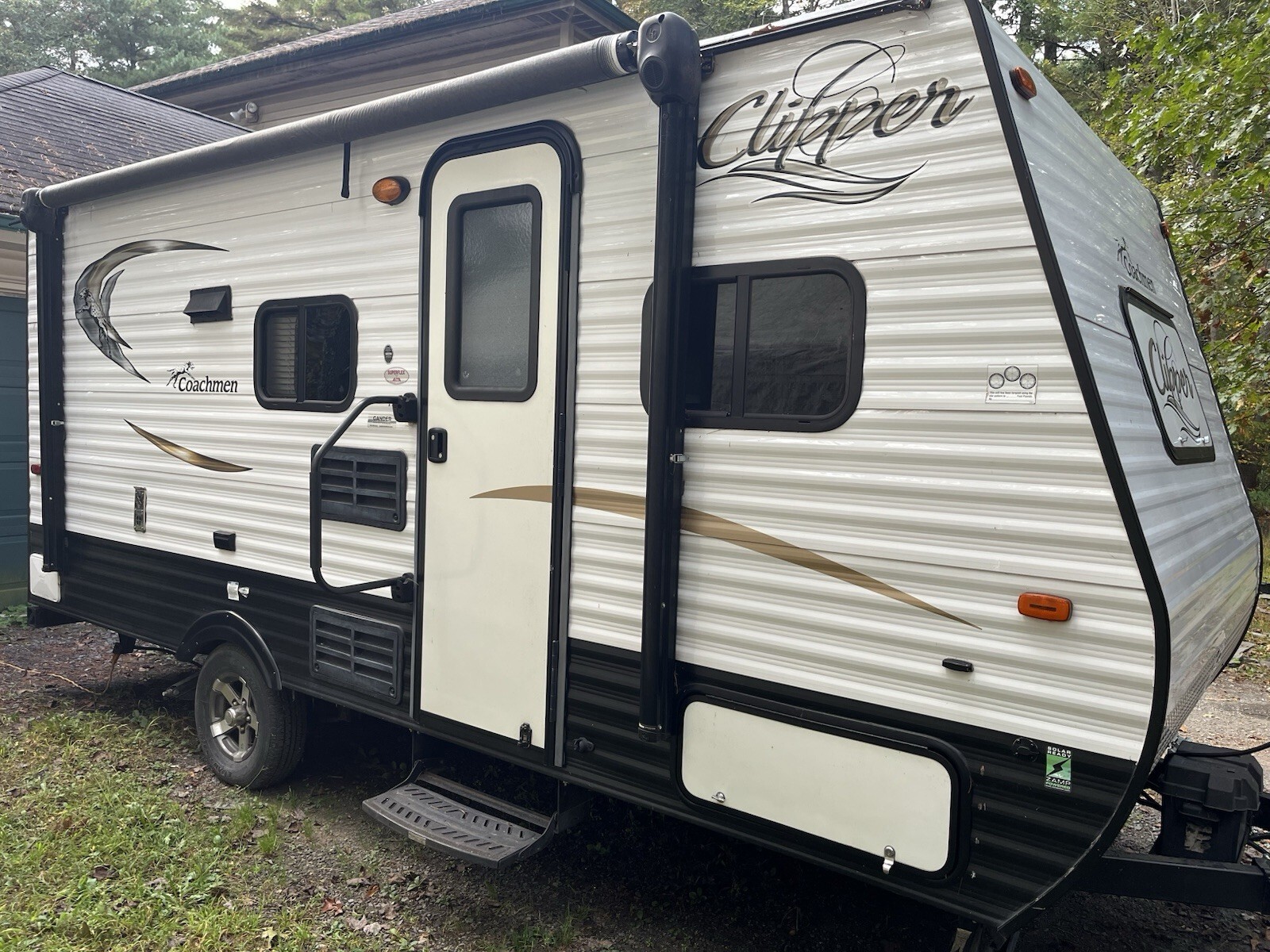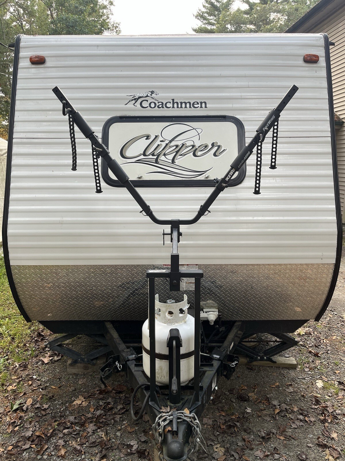 The 2015 Coachmen Clipper travel trailer by Forest River offers a sleeping capacity of 5 people, making it ideal for small families or groups of friends. Included in this model are leveling jacks for easy setup and a slide-out awning for added shade and privacy while camping. With an air conditioner and one awning, this towable RV provides comfort and convenience for outdoor adventures. A winter cover and two bike racks are included.