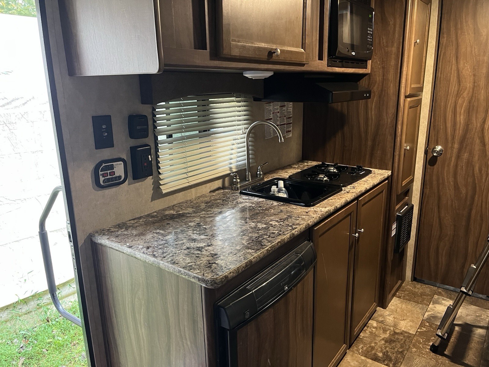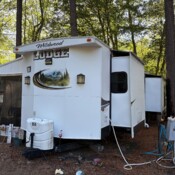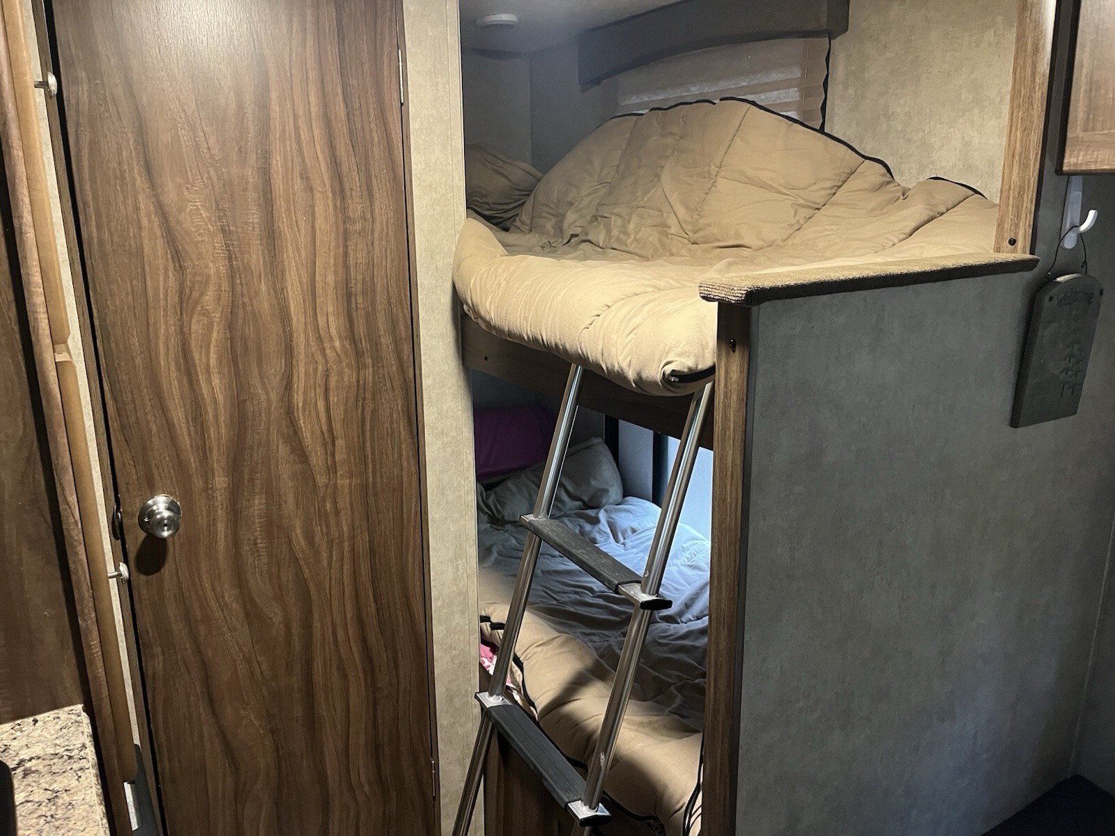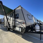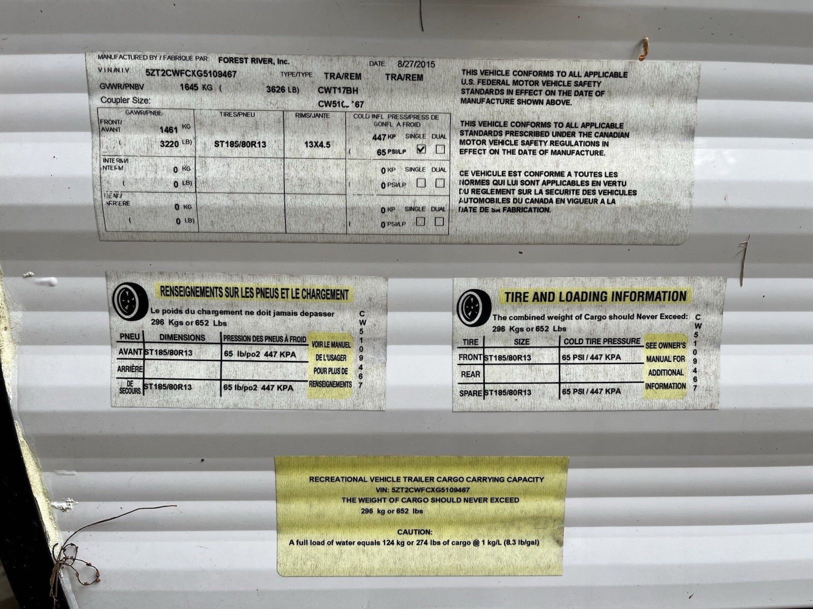 The 2015 Coachmen Clipper travel trailer by Forest River offers a sleeping capacity of 5 people, making it ideal for small families or groups of friends. Included in this model are leveling jacks for easy setup and a slide-out awning for added shade and privacy while camping. With an air conditioner and one awning, this towable RV provides comfort and convenience for outdoor adventures. A winter cover and two bike racks are included.