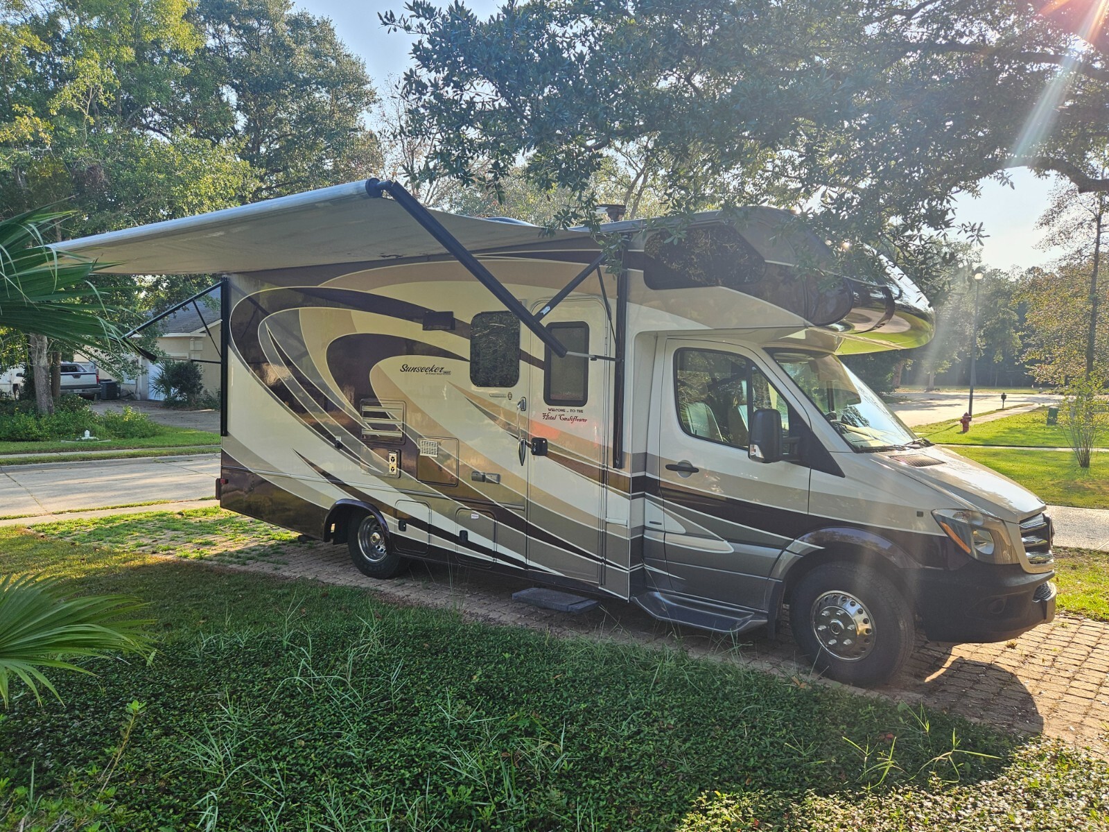 2016 Forest River Sunseeker, 2400WS, Mercedes 3500 Chassis, 25,000 miles, 12-14MPG, 25 foot length, full length slide out on driver’s side,. Mercedes 3.6 6 cylinder Diesel. Required maintenance complete, all new tires, new awnings, roof sealed, in perfect mechanical condition..Onan 3.5 propane generator, roof top 13,500 BTU AC, 10 gallon propane tank, External propane quick connect for grill, new backup and side cameras, remodeled bathroom, new Dometic 131 toilet, interior near perfect with minimal wear, always stored under cover, sleeps 5- 6, tons of storage space internal and exterior, external paint near flawless. Like new…with a few minor scratches.