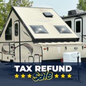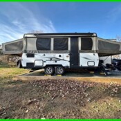 The Flagstaff High Wall HW27KS folding pop-up camper by Forest River offers a single slide and front and rear tent beds.