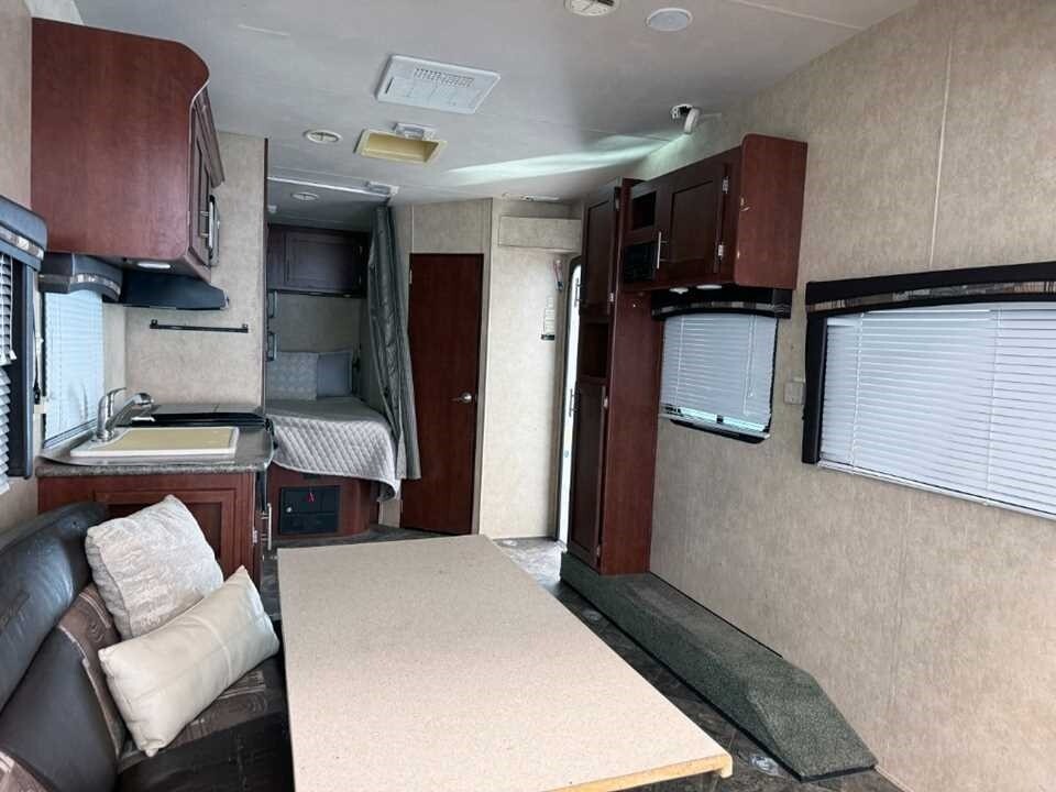 The 2015 Forest River Shockwave MXT18SS is a lightweight toy hauler that packs big adventure into a compact footprint. Its spacious 10-foot garage easily accommodates your favorite toys—whether it’s dirt bikes, ATVs, or gear for the weekend. Inside, the single slide-out expands your living area, offering a comfortable dinette that converts into sleeping space.