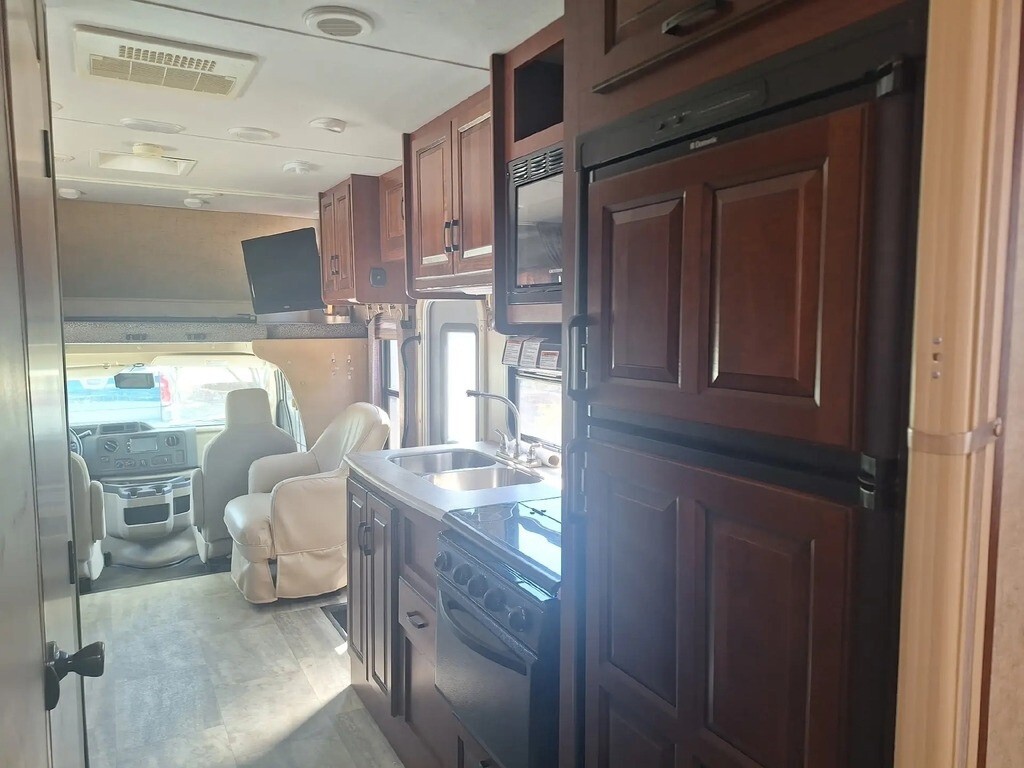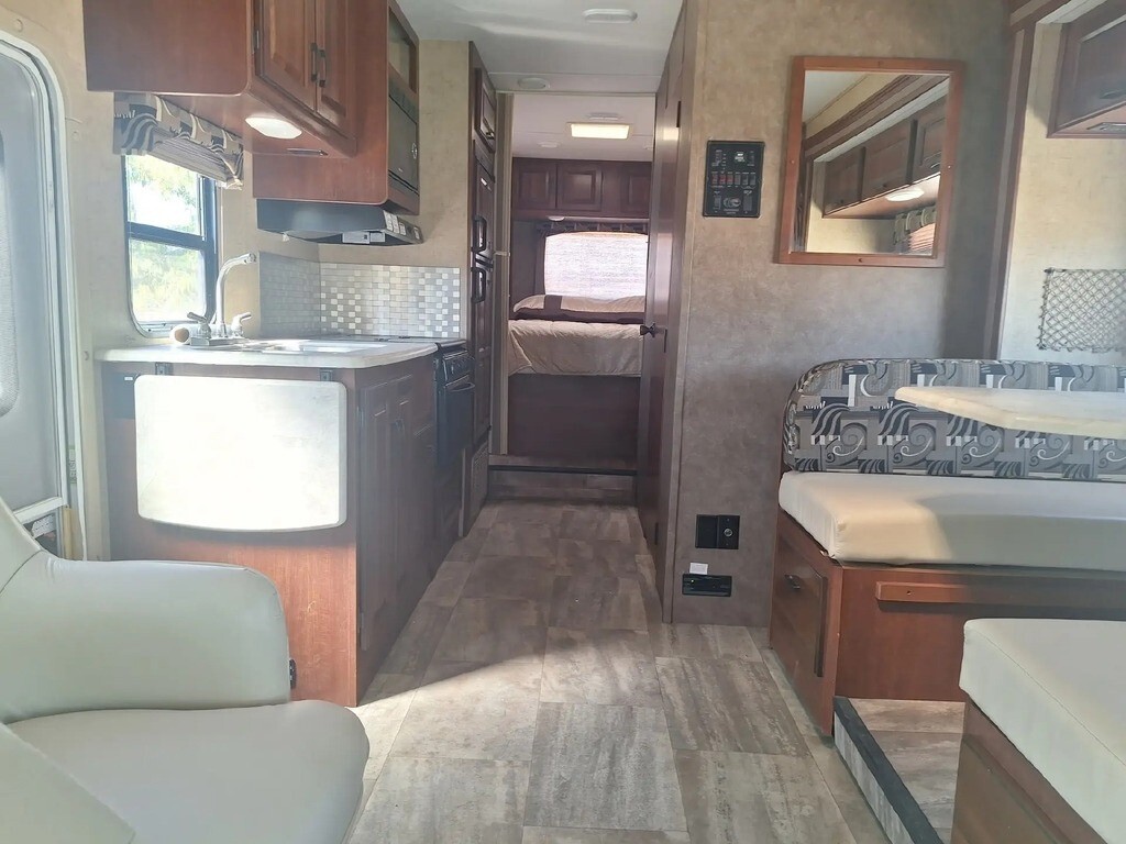 2016 Forest River Sunseeker 2650S Class C RV For Sale in Palmdale, CA 93551 This Forest River is powered by a 6.8L V10 engine and a 6-speed automatic transmission with 7,800 miles. The overall length is 28.33 feet, and it comes equipped with 1 power retractable slide-out, a 12.6-foot power awning, 1 A/C unit, an Onan generator, and plenty of room to sleep 6. This unit has been well-maintained. Kitchen/Living Area Features 3-Burner Stove/Oven Overhead Fan Microwave Mid-Size Fridge/Freezer Sink & Faucet Storage Space Booth Dinette