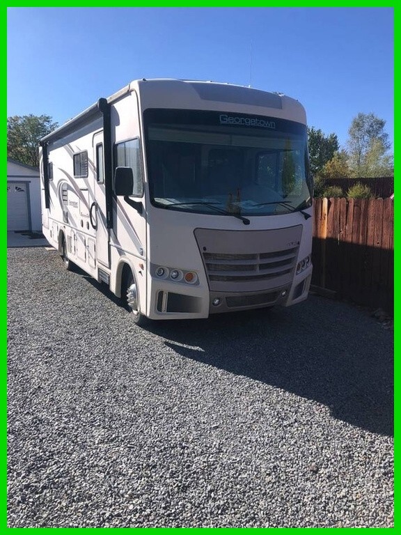 2017 Forest River Georgetown 30X3 Class A Motorhome This 2017 Forest River Georgetown 30X3 Class A Motorhome is a low-mileage luxury coach with only 5,523 miles and 48.7 generator hours. Built on a Ford V-10 gas chassis, it features two slide-outs, automatic hydraulic leveling jacks, and comfortable sleeping for up to six. The interior includes a king-size bed, twin recliners with a hide-a-bed, electric loft bunk, dinette sleeper, and three TVs. Enjoy 30-amp service, a dual-control water heater, external kitchen, and 1 A/C unit. Recent updates include new batteries (May 2025). Additional features include tow hitch receiver, fresh/sewer hoses, and full functionality throughout. Well cared for by the second owner—priced to move. Located in Sun Valley, NV 894