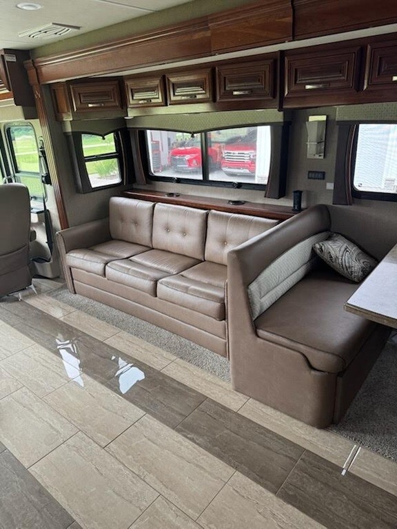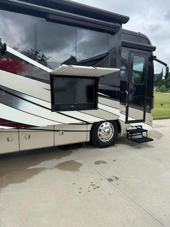 This Forest River is powered by an 8.9L I6 diesel engine and a 6-speed automatic transmission with 35,500 miles. The overall length is 42.83 feet and comes equipped with 3 power retractable slide-outs, 2 power retractable awnings, 3 A/C units (2 with heat pumps), a generator, 1½ baths, an outdoor entertainment system, and room to sleep up to 8. Set up for easy winterization. This unit has been well-maintained.