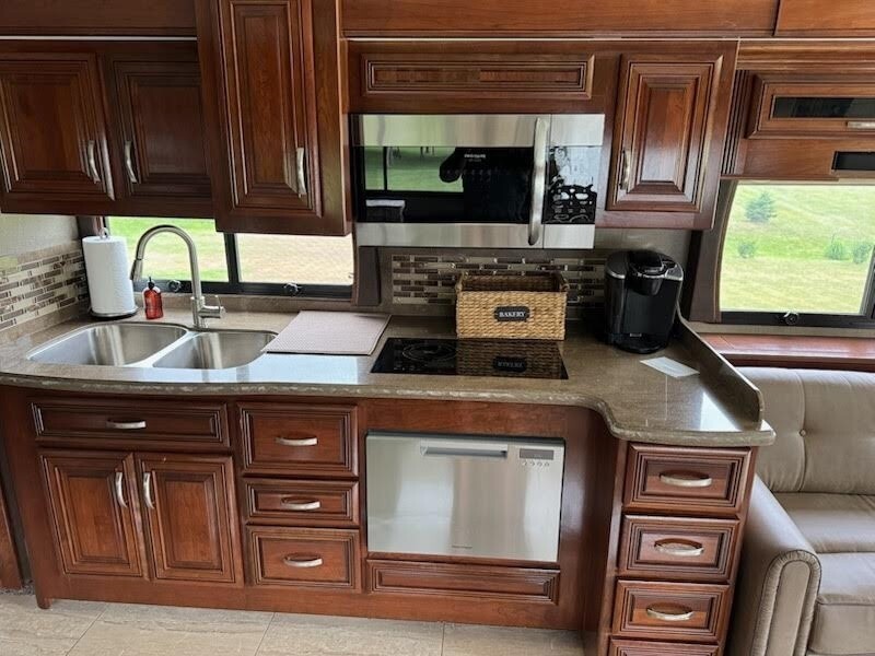 2018 Forest River Berkshire XLT 43A Class A Diesel For Sale in Hamilton, MI 49419 This Forest River is powered by an 8.9L I6 diesel engine and a 6-speed automatic transmission with 35,500 miles. The overall length is 42.83 feet and comes equipped with 3 power retractable slide-outs, 2 power retractable awnings, 3 A/C units (2 with heat pumps), a generator, 1½ baths, an outdoor entertainment system, and room to sleep up to 8. Set up for easy winterization. This unit has been well-maintained. VIDEO 1: Exterior VIDEO 2: Interior Kitchen/Living Area Features 2-Burner Stovetop Overhead Fan
