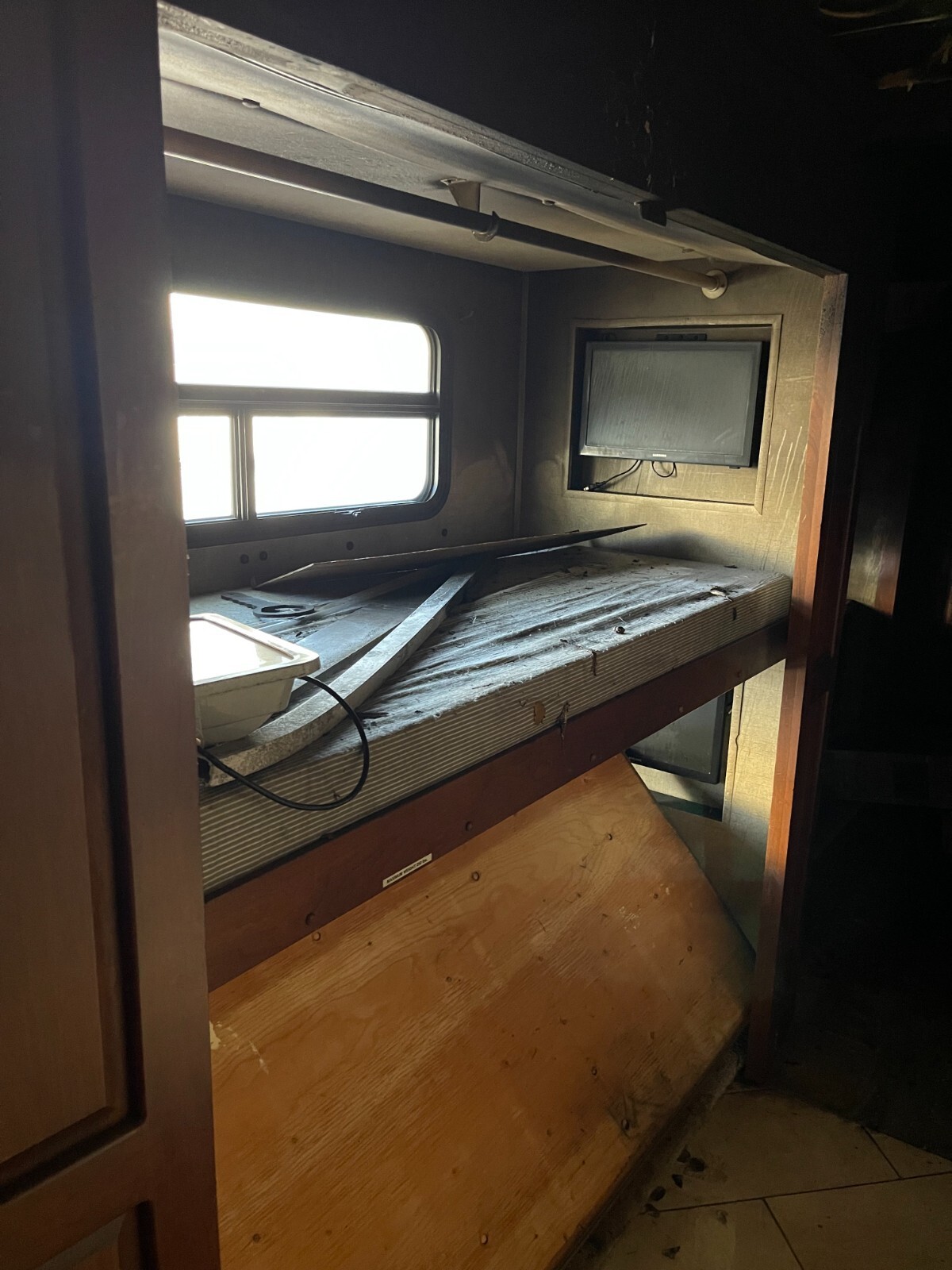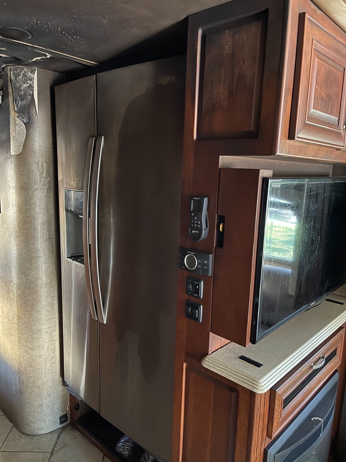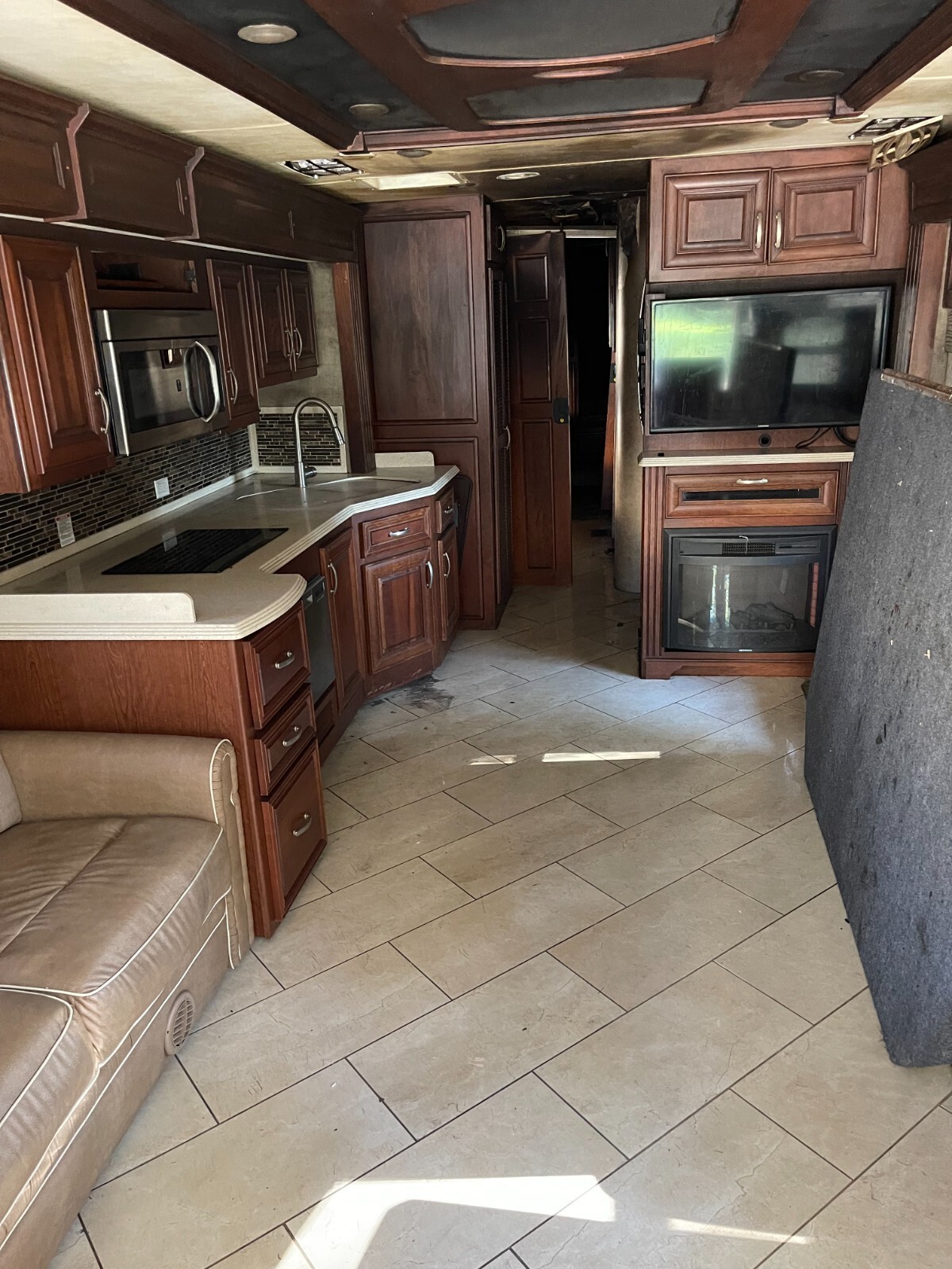 We have the front generator panel in the storage bay. The engine does not currently run. We had just started to replace wires at the rear side fuse and relay block. Onan runs fine. Remember, this coach sells for $200,000 without burn damage. Plenty of room for the repairs and a lot of PROFIT!