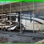 Equipped with dual A/C units, gas furnace, air cushion ride hitch, push-button hydraulic leveling system, and pre-wiring for solar panels, this Hathaway Edition is ready for extended stays or full-time living. Electronic thermostat controls allow precise airflow management throughout the unit. A true “house on wheels,” this Cedar Creek must be seen to fully appreciate the level of care and upgrades.