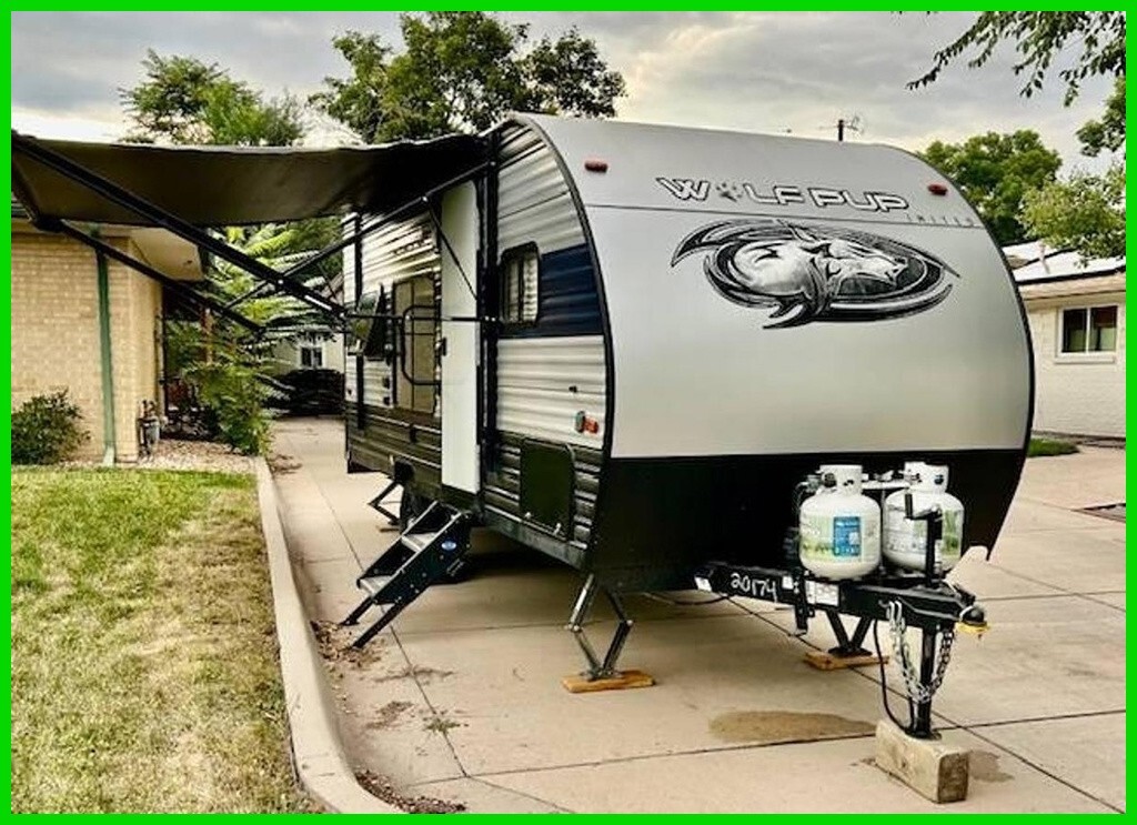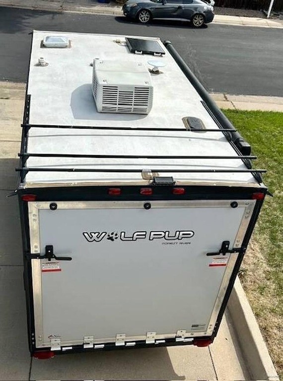 2020 Forest River Cherokee/Wolf Pup Toy Hauler This compact and versatile toy hauler offers a well-designed space including a queen bed, convertible bench/twin bed, kitchenette, full bathroom, and stereo system. It is equipped with heat, AC, solar power with an additional panel, propane tanks, and stabilizers. The electric awning and exterior paint are in excellent condition. Lightweight and easy to tow, this unit is ideal for outdoor recreation, travel, or weekend adventure setups. Located in Lakewood, CO 80226 For more information, please call 833-265-6113 and mention ID 05117