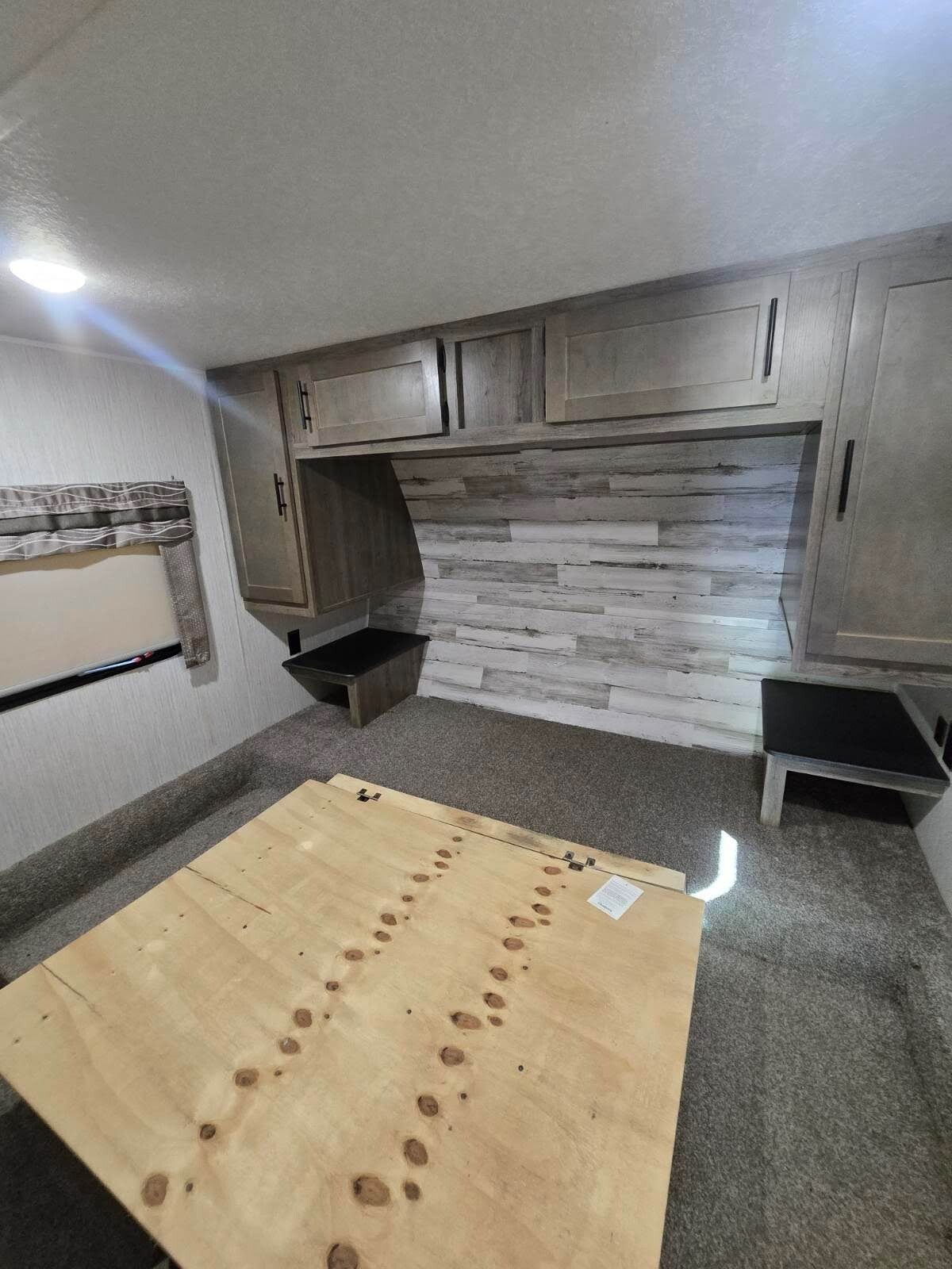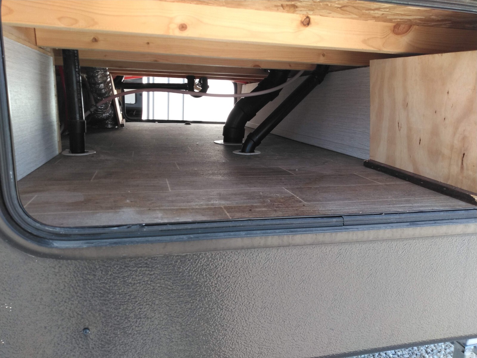 Just got this toy hauler from the insurance company due to water leaking in 1/2 bat, You can see photos where we replace joist, insulation and new floor decking. We gluing vinyl tomorrow and putting back in bathroom walls, doors, and fireplace. Should be done tomorrow or Saturday, keep eye in photo updates if doesn't sell before then.