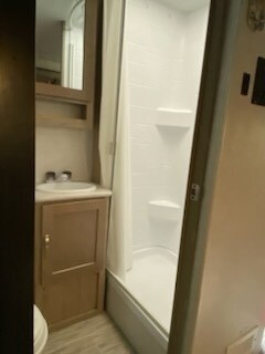 Full Bathroom with Shower, Fan, Toilet, and Vanity