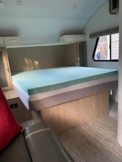 Relax up front on the new hybrid mattress (never slept on) with a 3” foam topper and unwind on the jackknife sofa that replaced the dinette great for lounging or extra sleeping space.