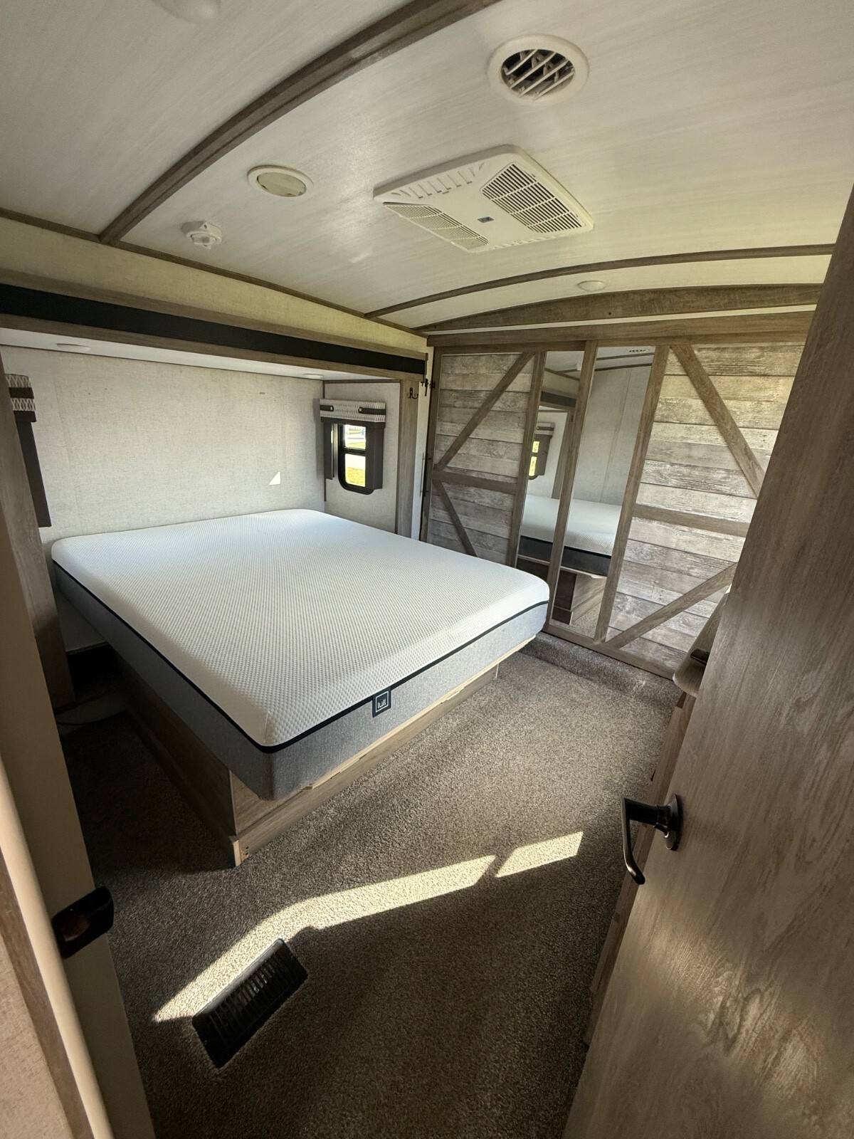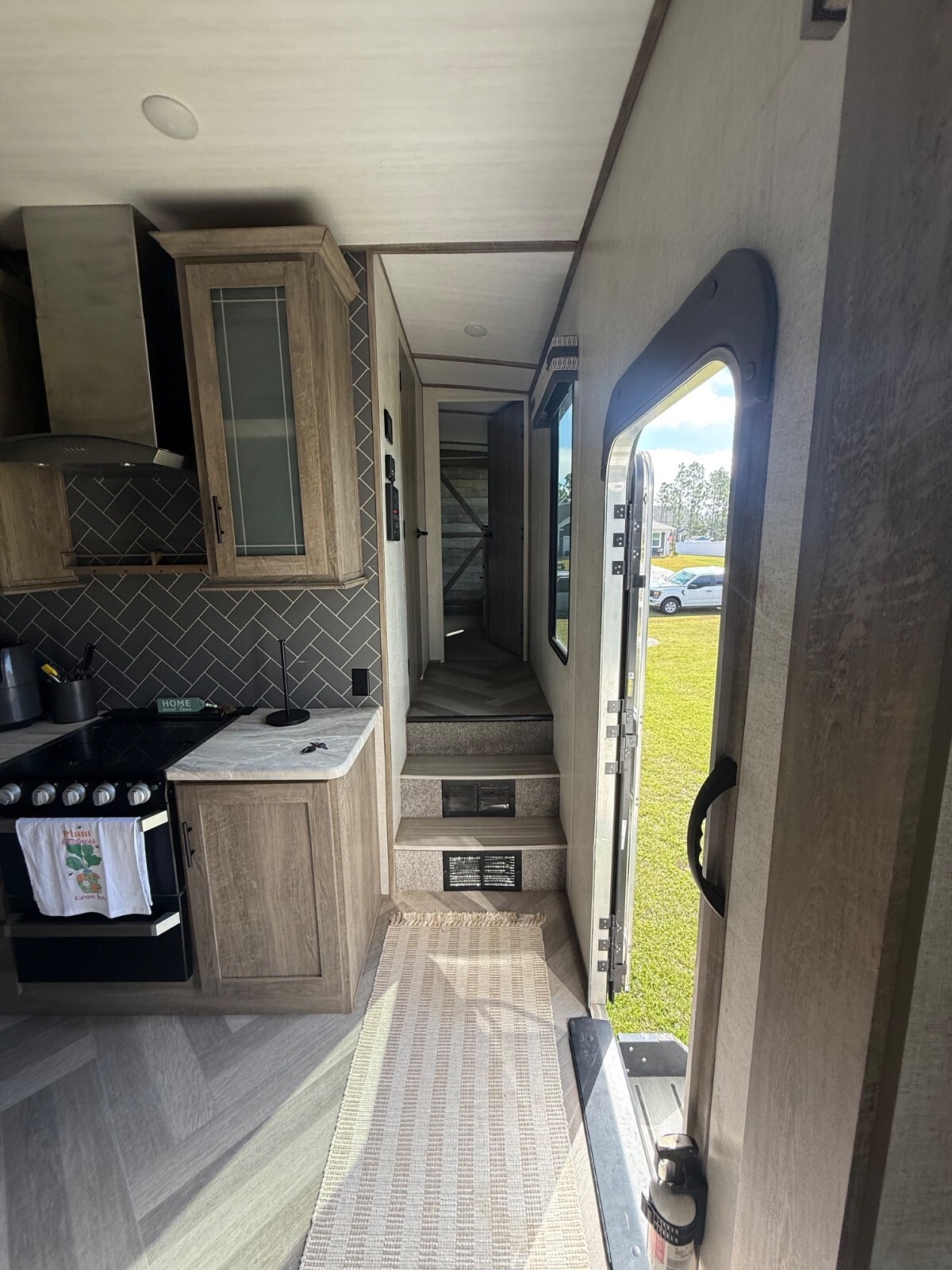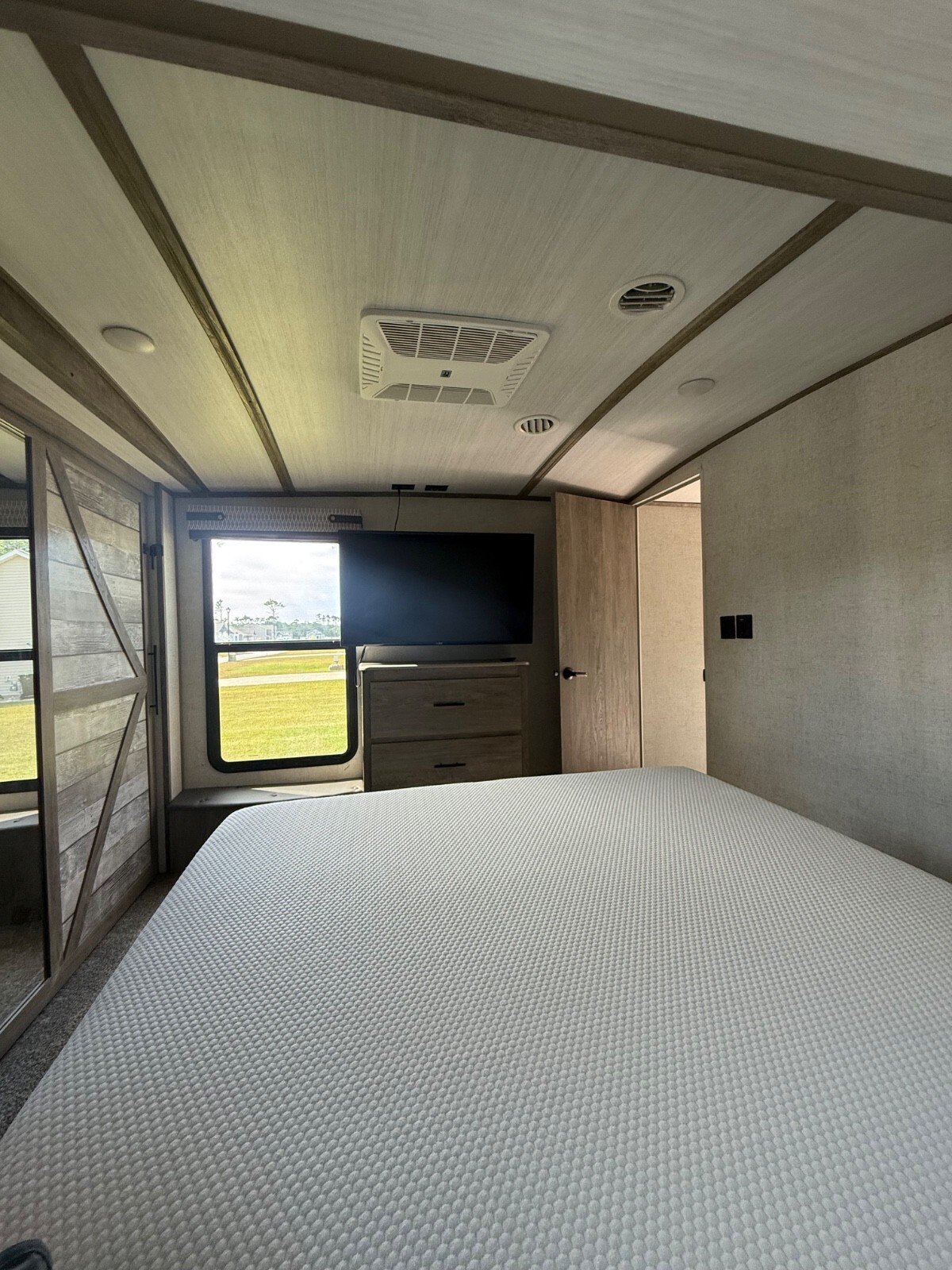 Features:- Spacious rear living area with bar seating and entertainment center- Kitchen island with solid surface countertops- Large residential-style refrigerator- Fireplace and theater seating- King bed in private master bedroom- Large bathroom with full shower- Washer/dryer hookups- Power awning and outdoor speakers