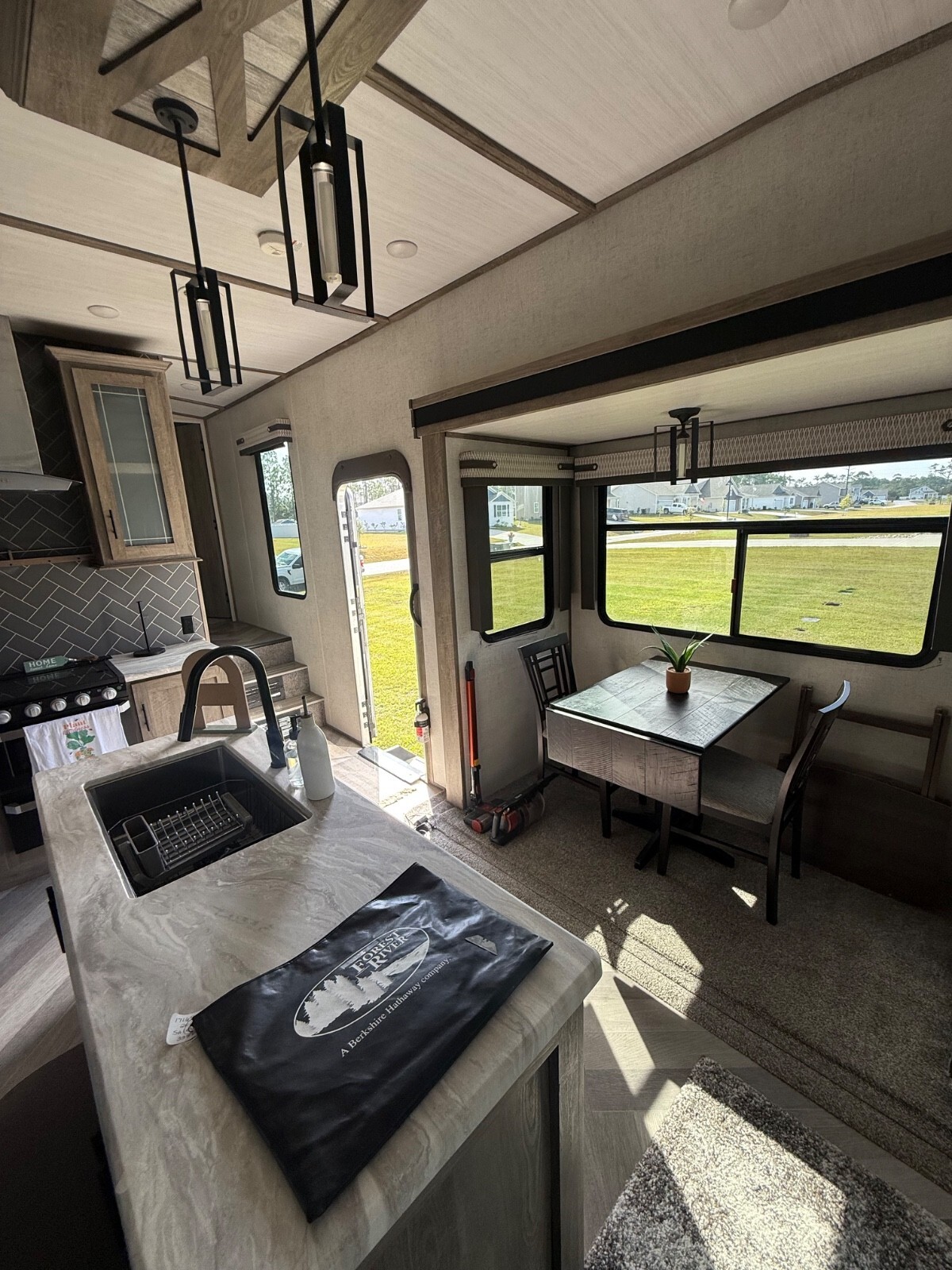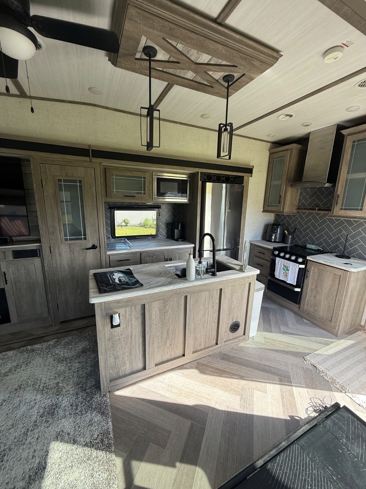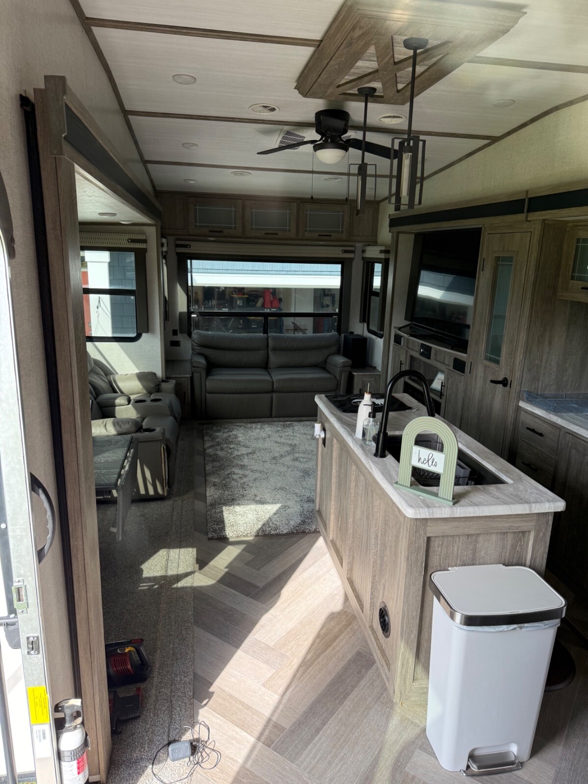 38.5 ft luxury fifth wheel with 3 slide-outs and a rare rear bar layout. This camper is clean, well maintained, and ready to camp immediately.