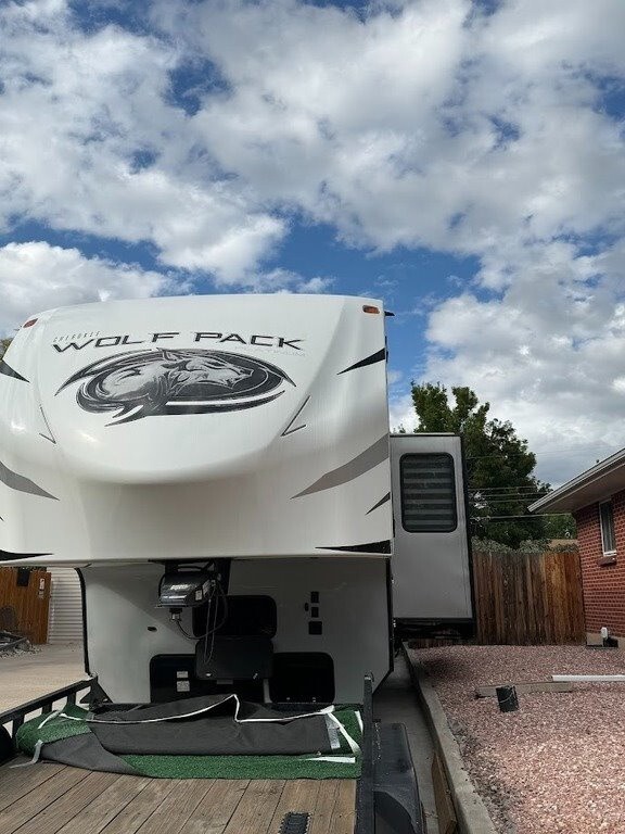 “For sale is a 2021 Forest River Cherokee Wolf Pack 365PACK16 Platinum Edition Toy Hauler in excellent condition, featuring a spacious 15'10" garage to haul all your toys. It comes equipped with a 30-gallon fuel tank, an outdoor kitchen, and a new upgraded solar setup—including a 150-watt solar panel and dual lithium batteries for extended off-grid capability. The tires were replaced this year and have less than 200 miles on them, and the bearings have been freshly packed. This rig is road-ready, well-maintained, and fully equipped for the next adventure.”