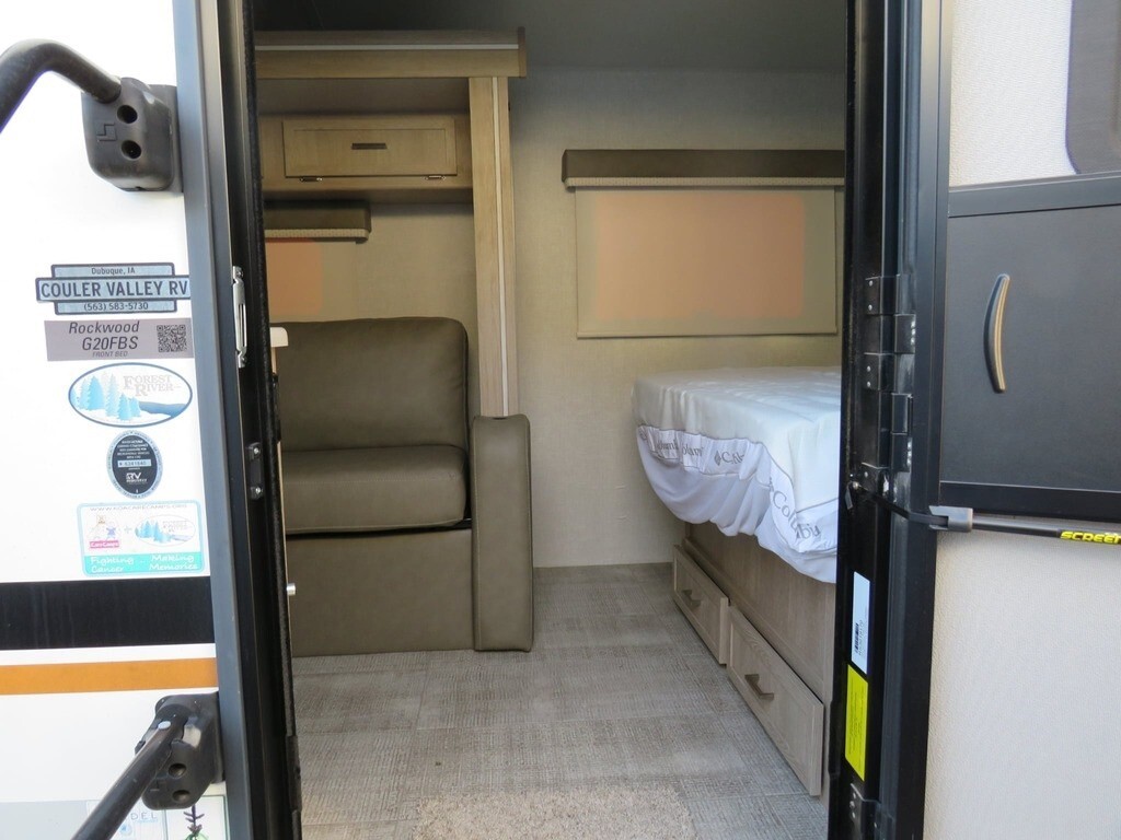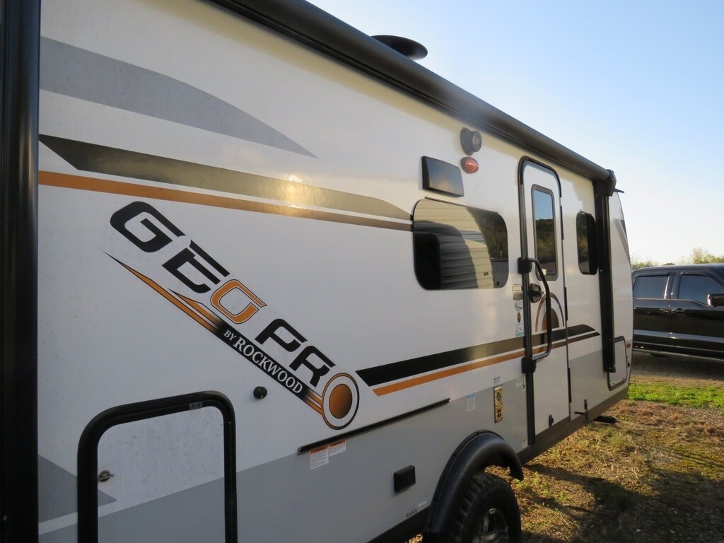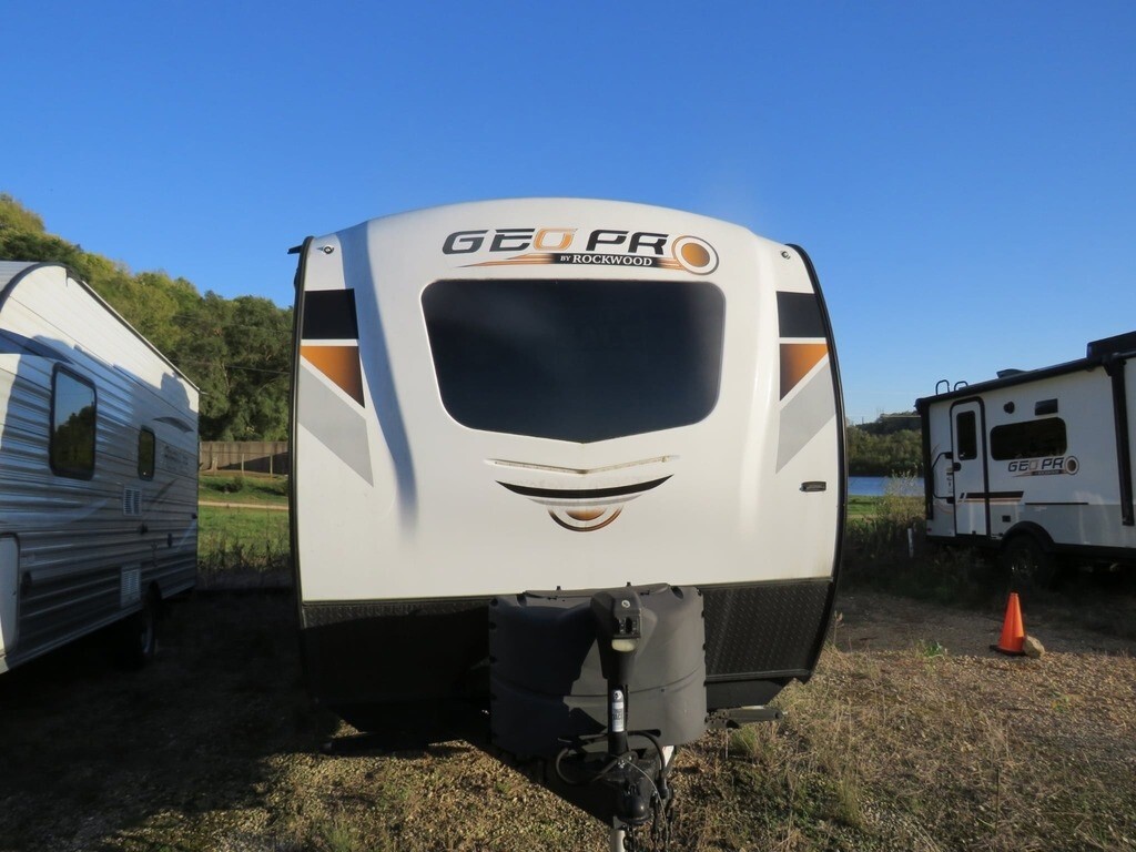 2021 Forest River Rockwood Geo Pro G20FBS Travel Trailer For Sale in Dubuque, IA 52001 This Forest River has an overall length of 21.17 feet and comes equipped with 1 power-retractable slide-out, a 14-foot power awning, 1 A/C unit, and room to sleep up to 4. This unit has been well-maintained. Kitchen/Living Area Features 3-Burner Stovetop Overhead Fan Microwave Mid-Size Fridge/Freezer Sink & Faucet TV Sleeper Sofa Removable Pedestal Table Full-Size Bed Closet/Storage Spac