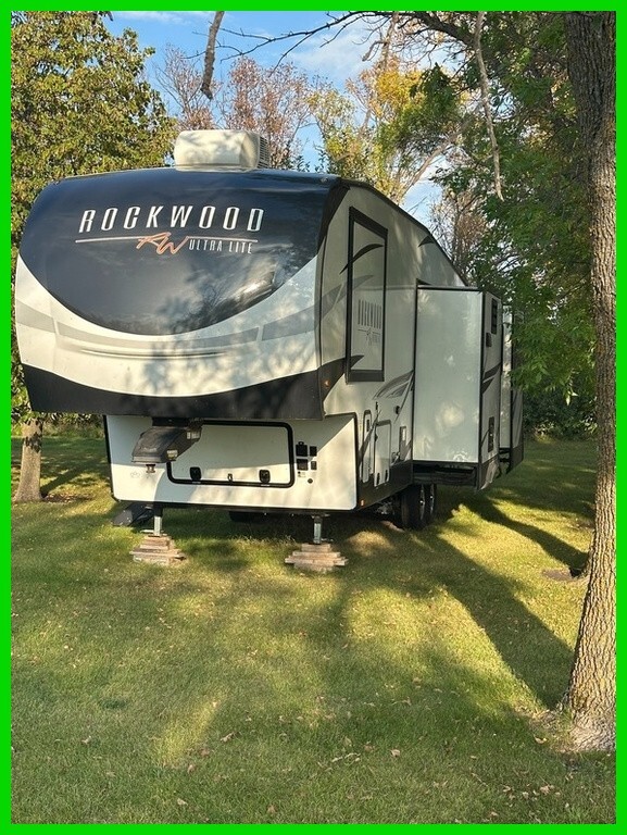 2021 Forest River Rockwood Ultra Lite 2898KS This 2021 Forest River Rockwood Ultra Lite 2898KS fifth wheel is spacious, clean, and in excellent condition throughout. The layout features four slide-outs and a rear living design that makes the interior bright and open. Inside, you’ll find two fold-out sleeper couches, a reclining loveseat, a fireplace with a 50” Smart TV, and a full kitchen with a high-top table and chairs. The bedroom includes a TV, queen bed, and large closet. Additional highlights include dual air conditioners, LED awning lights, a Bluetooth sound system with outdoor speakers, hitch and wiring for towing a boat, and ample storage throughout. Comes with an inline water filtration system with filters, a new 30-foot 50-amp cord, and a Sunbeam cooktop grill. This like-new fifth wheel is ready for travel or extended stays, with storage available until spring. Located in Davenport, ND 58021 For more information, please call 833-265-6113 and mention ID 85196