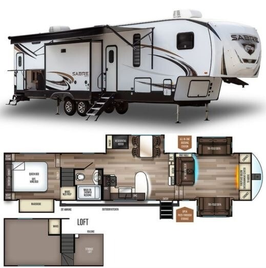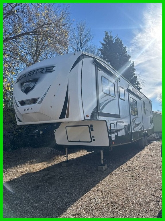 2021 Forest River Sabre 37FLL Fifth Wheel This 2021 Forest River Sabre 37FLL fifth wheel offers a spacious, like-new layout ideal for extended stays or family adventures. The front living area features dual sleeper sofas, a heated and lighted reclining loveseat, and a large entertainment center. A double loft provides additional sleeping and storage space, while the kitchen is equipped with abundant cabinetry, a French door refrigerator, and a large pull-out freezer. Upgrades include a Furrion camera system, new tires, slide shades, a new mattress, bumper hitch, and automatic hydraulic leveling jacks. This beautiful fifth wheel has been meticulously maintained and is ready for its next owner. Located in Velva, ND 58790 For more information, please call