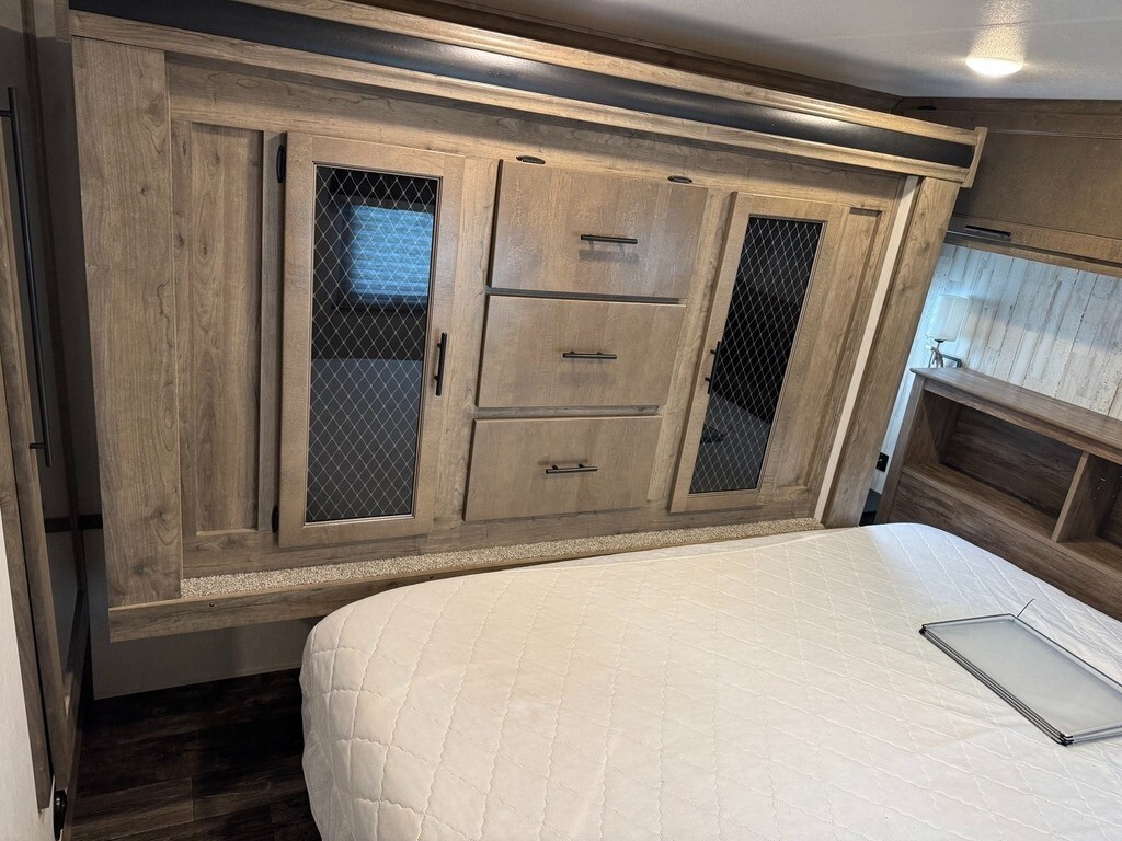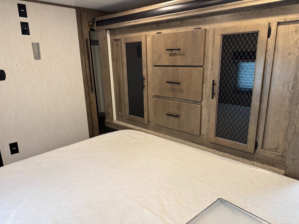 This 2021 Forest River Sabre 37FLL fifth wheel offers a spacious, like-new layout ideal for extended stays or family adventures. The front living area features dual sleeper sofas, a heated and lighted reclining loveseat, and a large entertainment center. A double loft provides additional sleeping and storage space, while the kitchen is equipped with abundant cabinetry, a French door refrigerator, and a large pull-out freezer. Upgrades include a Furrion camera system, new tires, slide shades, a new mattress, bumper hitch, and automatic hydraulic leveling jacks. This beautiful fifth wheel has been meticulously maintained and is ready for its next owner. Located in Velva, ND 58790 For more information, please call 833-265-6113 and mention ID 85195