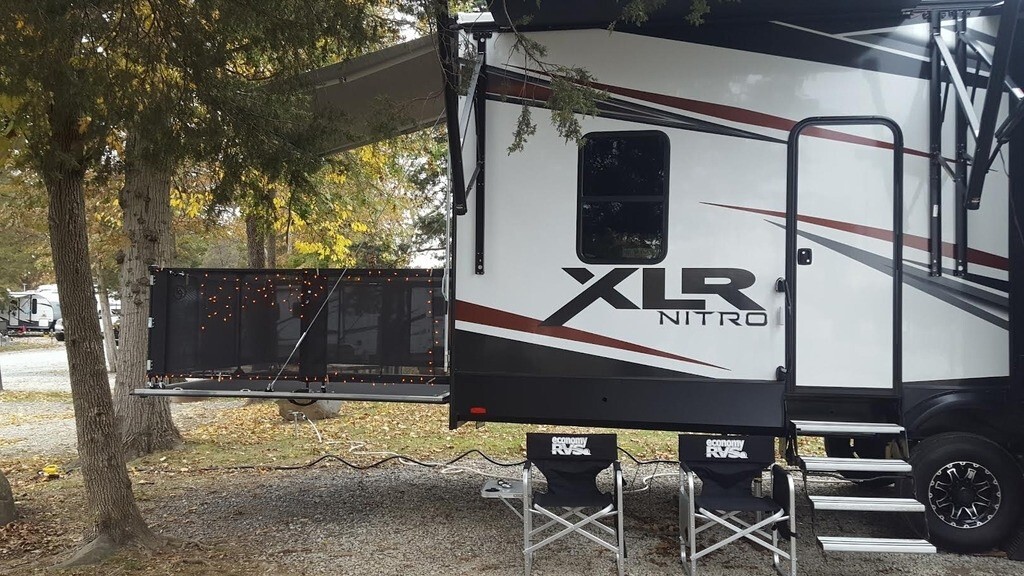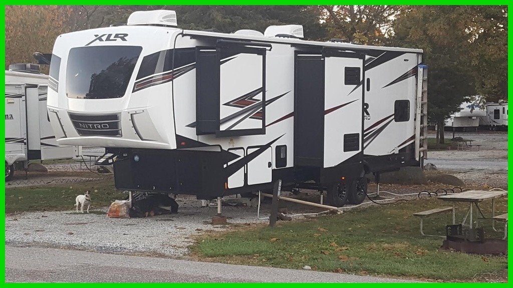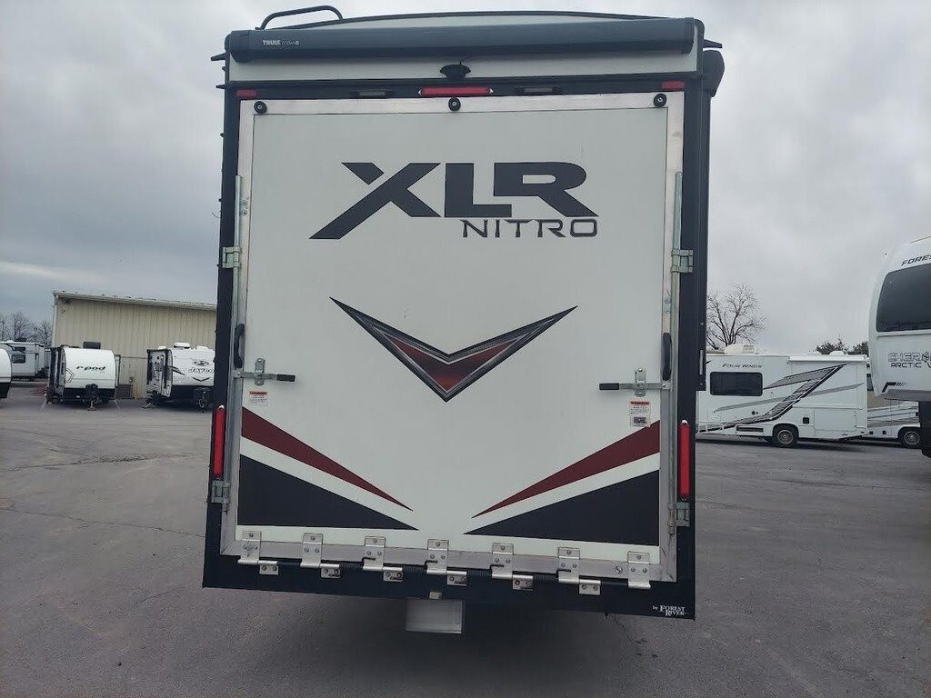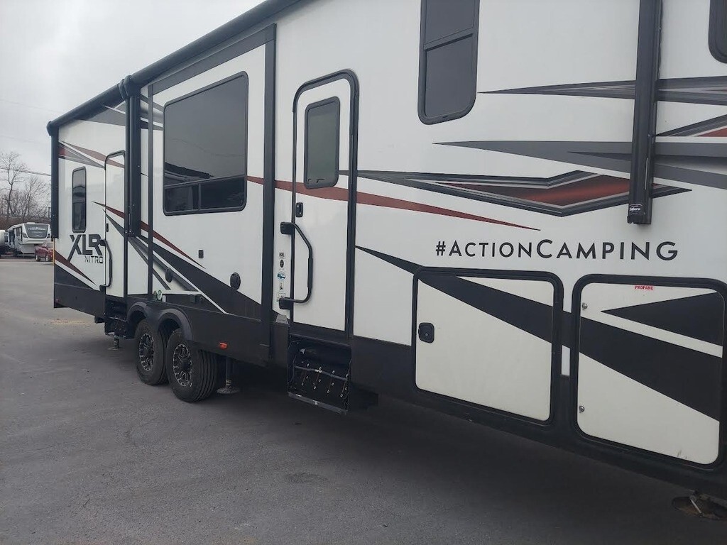 2021 Forest River XLR Nitro 321 Fifth Wheel Toy Hauler For Sale in Hagerstown, MD 21742 This Forest River has an overall length of 37.83 feet and comes equipped with 3 power-retractable slide-outs, an 18-foot power patio awning, 2 A/C units, a generator, a 11-foot garage, 1½ baths, a fireplace, and plenty of room to sleep 8. This unit has been well-maintained. Kitchen Features 3-Burner Stove/Oven Microwave Full-Size Fridge/Freezer Sink & Faucet Pantry/Storage Space TV Fireplace Sofa Loft Area