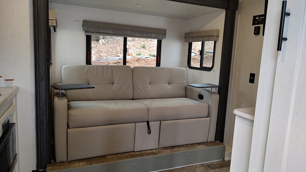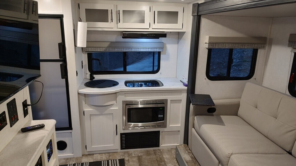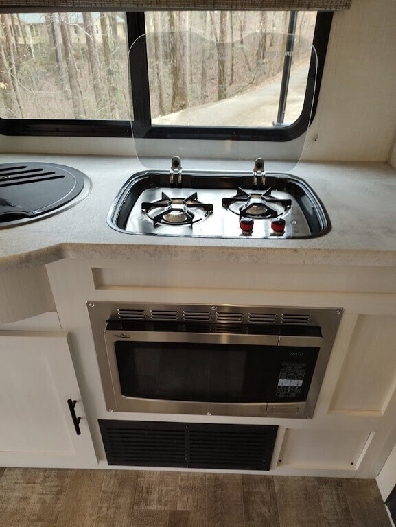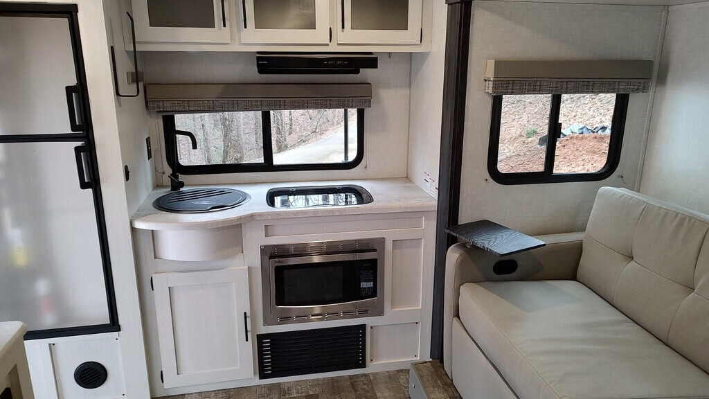 2022 Forest River r pod 202 Travel Trailer For Sale in Alpharetta, GA 30009 This r pod has an overall length of 25 feet and comes equipped with 1 power retractable slide-out, 1 power retractable awning, 1 A/C unit, an electric fireplace heater, an outdoor kitchen, and room to sleep 4. This unit has been well-maintained. Kitchen/Living Area Features 2-Burner Stovetop Overhead Fan Microwave Mid-Size Fridge/Freezer Sink & Faucet w/ Cover Storage Space 40" TV Electric Fireplace Heater Reclining Sofa w