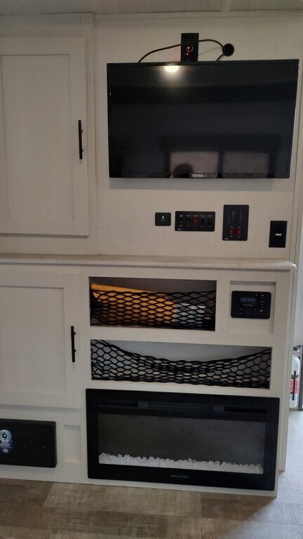 This r pod has an overall length of 25 feet and comes equipped with 1 power retractable slide-out, 1 power retractable awning, 1 A/C unit, an electric fireplace heater, an outdoor kitchen, and room to sleep 4. This unit has been well-maintained.