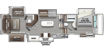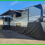 This Riverstone has an overall length of 44.33 feet and comes equipped with 5 power retractable slide-outs, 1 power retractable awning, 1.5 bathrooms and plenty of room to sleep 6. This unit has been well-maintained.