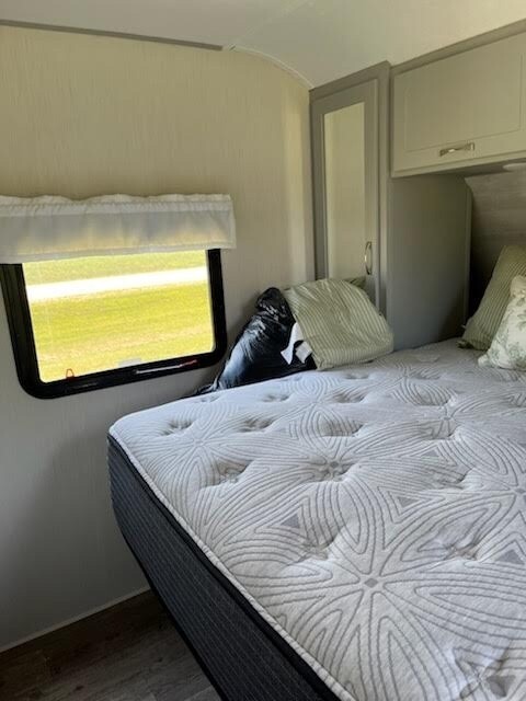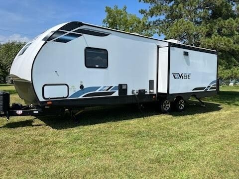 “For sale is a 2022 Forest River Vibe 28RL Travel Trailer in excellent condition. This well-maintained unit has been lightly used and always kept clean and cared for. It features a spacious rear living layout with dual opposing slides, a large entertainment center, theater seating, a fireplace, and a modern kitchen with an island and residential-style appliances. The private front bedroom includes a walk-around queen bed with plenty of storage. Everything works as it should—appliances, HVAC, and all systems are in great shape. This Vibe 28RL is ready to hit the road or set up for extended stays, offering comfort, style, and reliability in a beautiful, like-new package.”