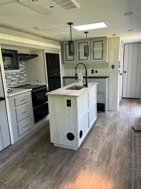 2022 Forest River Vibe 28RL Travel Trailer For Sale in Gautier, MS 39553 This Forest River has an overall length of 34.42 feet and comes equipped with 2 power-retractable slide-outs, 2 power awnings, 1 A/C unit, a fireplace, and room to sleep up to 6. This unit has been well-maintained. Kitchen/Living Area Features 3-Burner Stove/Oven Overhead Fan Microwave Full-Size Fridge/Freezer Sink & Faucet on Island Pantry/Storage Space Table & Chairs TV Fireplace Sleeper Sofa
