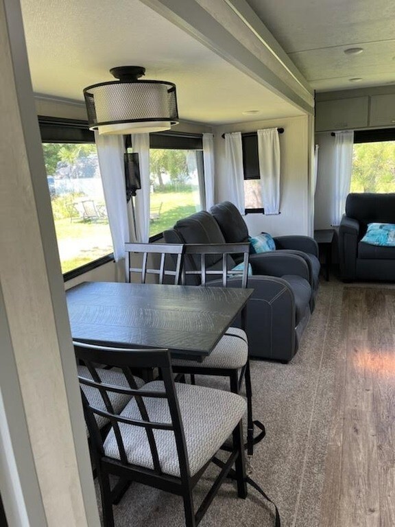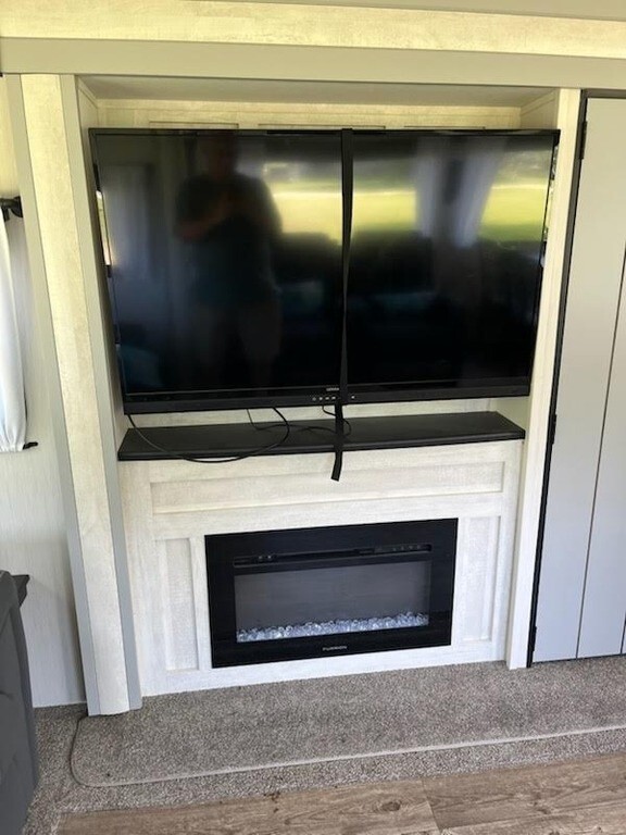 This Forest River has an overall length of 34.42 feet and comes equipped with 2 power-retractable slide-outs, 2 power awnings, 1 A/C unit, a fireplace, and room to sleep up to 6. This unit has been well-maintained.