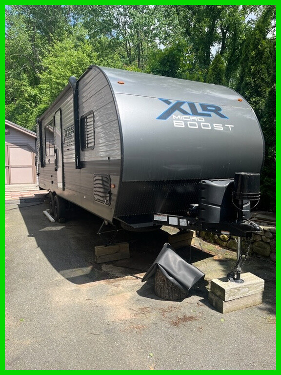 2022 Forest River XLR Micro Boost 25LRLE Travel Trailer Toy Hauler For Sale in Franklin, MA 02038 This Forest River has an overall length of 28.75 feet and comes equipped with a power retractable awning, 1 A/C unit, a fireplace, a solar panel, a 14-foot garage area, a rear patio deck, and plenty of room to sleep 6. This unit has been well-maintained. Also comes with brand new generator and tow hitch, also brand new cushions if desired. Kitchen/Living Area Features 3-Burner Stove/Oven Overhead Fan Microwave Full-Size Fridge/Freezer Sink & Faucet Storage Space