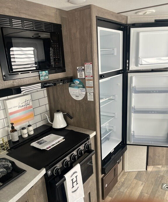 “NEW: GENERATOR AND TOW HITCH! New Cushions Available!2022 Forest River XLR Micro Boost 25LRLE Travel Trailer Toy Hauler in excellent condition. This well-equipped unit features a tankless water heater, solar panel, two Smart TVs, and outside surround sound for entertainment inside and out. The interior includes two comfortable captain’s chairs and a cozy fireplace, creating a welcoming space to relax after a day of adventure. The stove and oven have never been used, and everything is clean and well-maintained. Comes complete with hitch—ready to hit the road and haul your toys in style.”