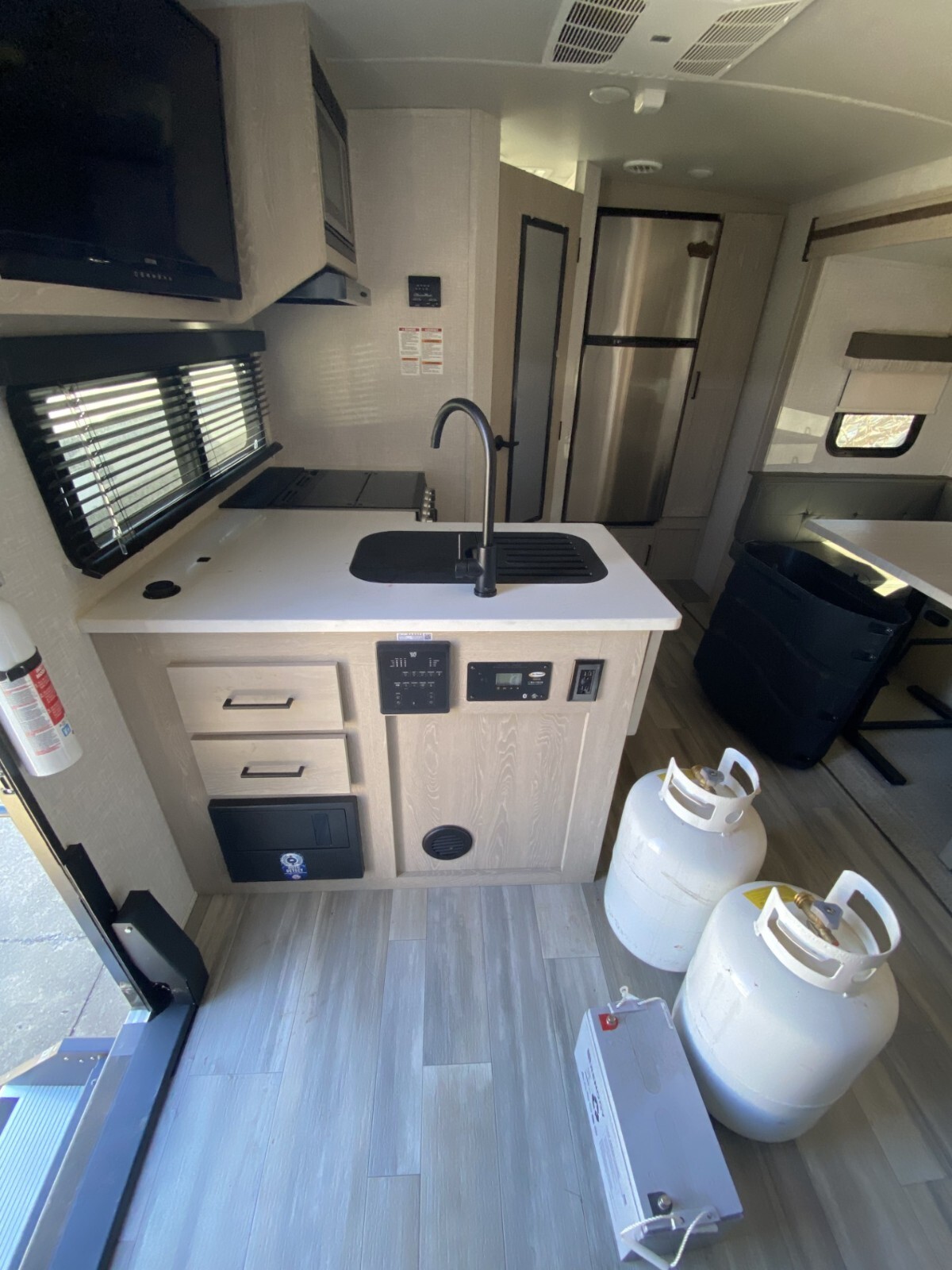 Sleeps4Slides1Length22 ft 4 inExt Width8 ftExt Height10 ft 11 inInterior ColorAUTUMN WOODExterior ColorWHITEHitch Weight681 lbsDry Weight4977 lbsCargo Capacity1864 lbsFresh Water Capacity54 galsGrey Water Capacity30 galsBlack Water Capacity30 galsFurnace BTU20000 btuAvailable BedsMurphyRefrigerator Type12VCooktop Burners3Number of Awnings1LP Tank Capacity30 lbsWater Heater TypeGas/Electric with Quick RecoveryAC BTU13500 btuTV InfoLR LED TVAwning Info15' Power with Adjustable Rain Dump and LED LightsAxle Count2Number of LP Tanks2Shower TypeRadius