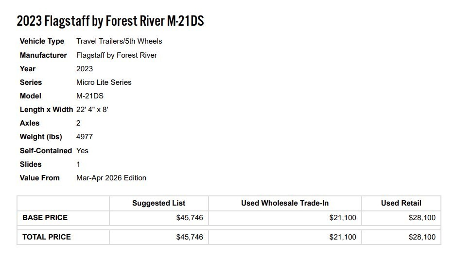 - Model: Flagstaff Micro Lite 21DS