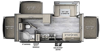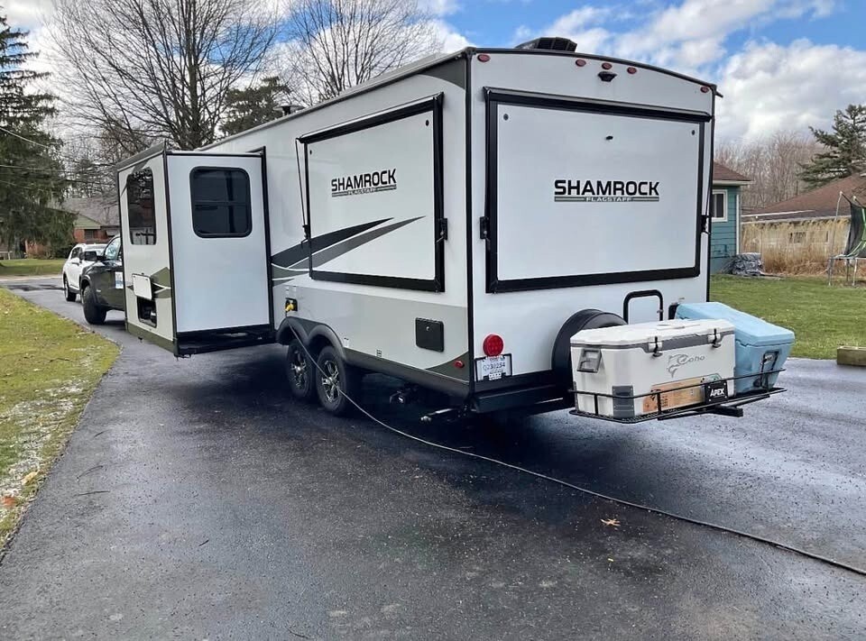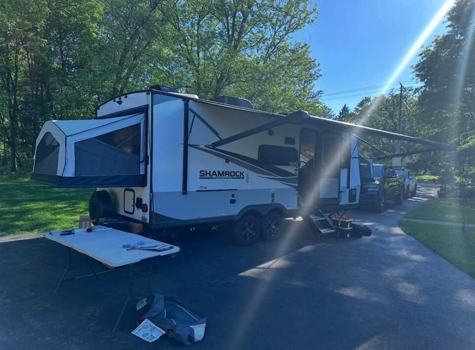 2023 Forest River Flagstaff Shamrock 233S Hybrid Travel Trailer for Sale in Solon, OH 44139 3 Expandable Beds | Sleeps 8–10 | Heated Mattresses | Outdoor Kitchen | Turnkey Setup | Under 3,000 Miles If you’re looking for a camper that is truly turnkey and ready to hit the road today, this is it. No setup stress, no extra purchases, everything you need is included. This 2023 Flagstaff Shamrock 233S has been extremely well cared for, lightly used, and comes loaded with over $4,000 in upgrades and extras. Spacious Sleeping & Smart Hybrid Design Sleeps 8–10 comfortably. 3-fold-out hybrid tent beds